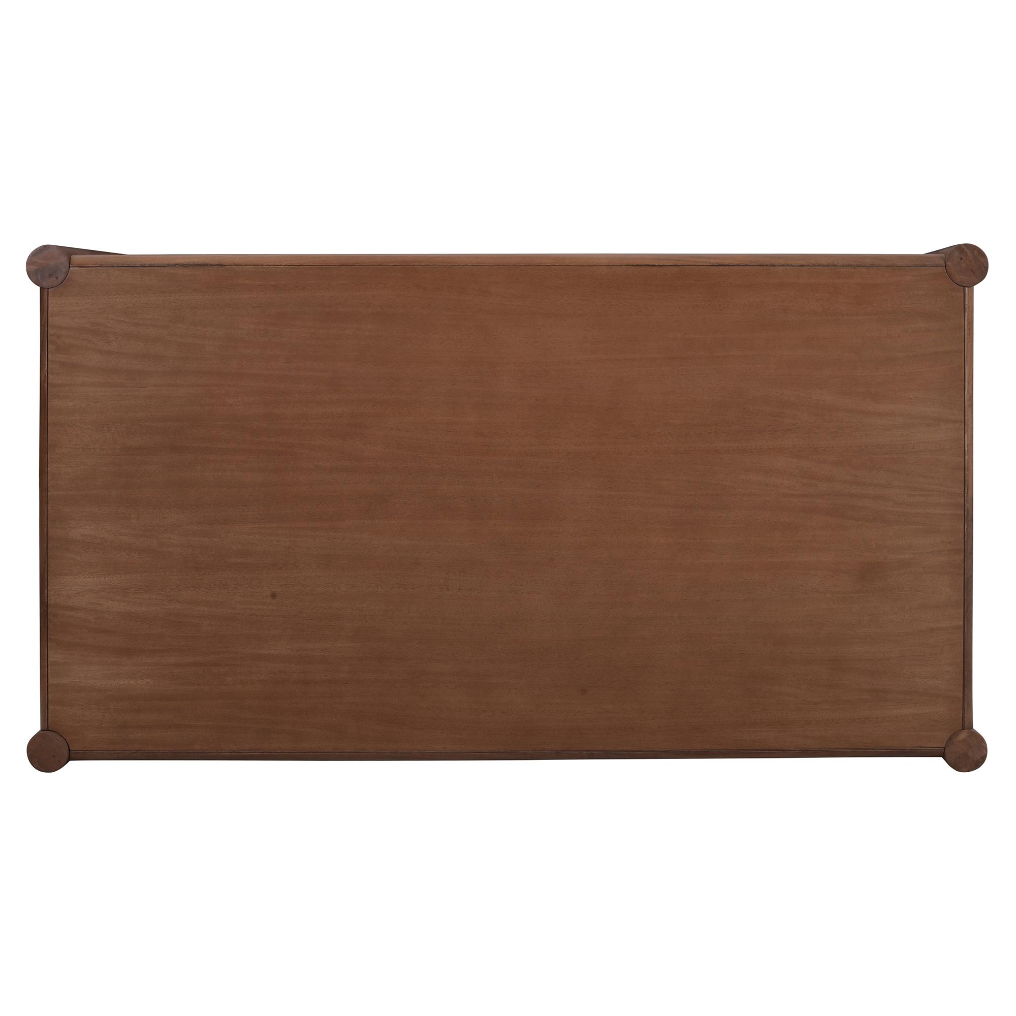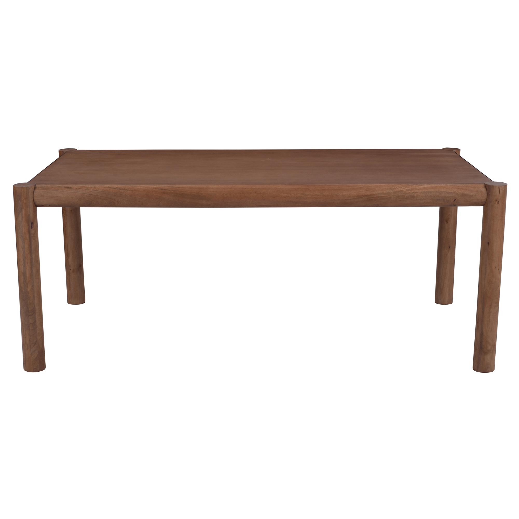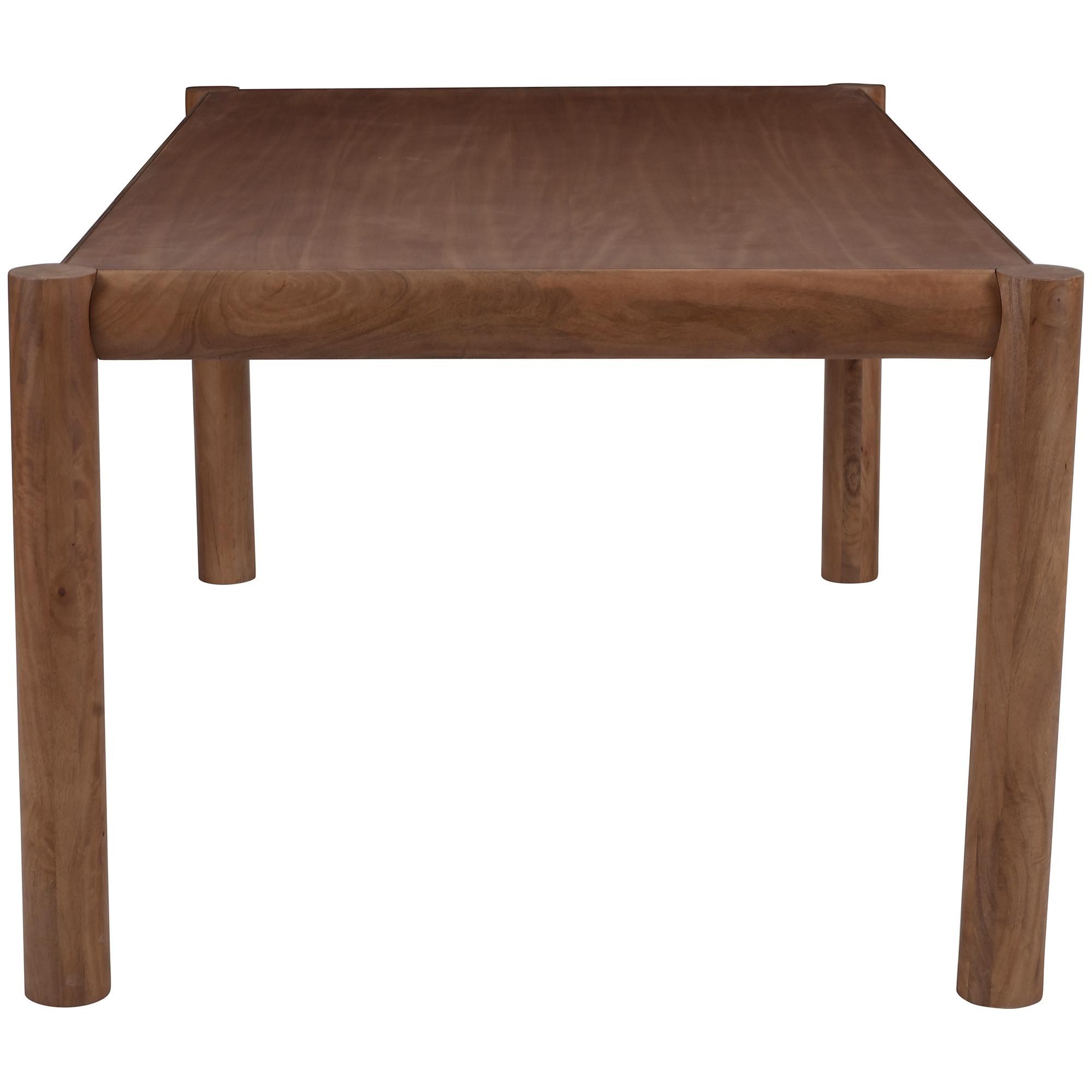 - Solid mango wood legs, engineered wood table top with mango veneer in a walnut finish