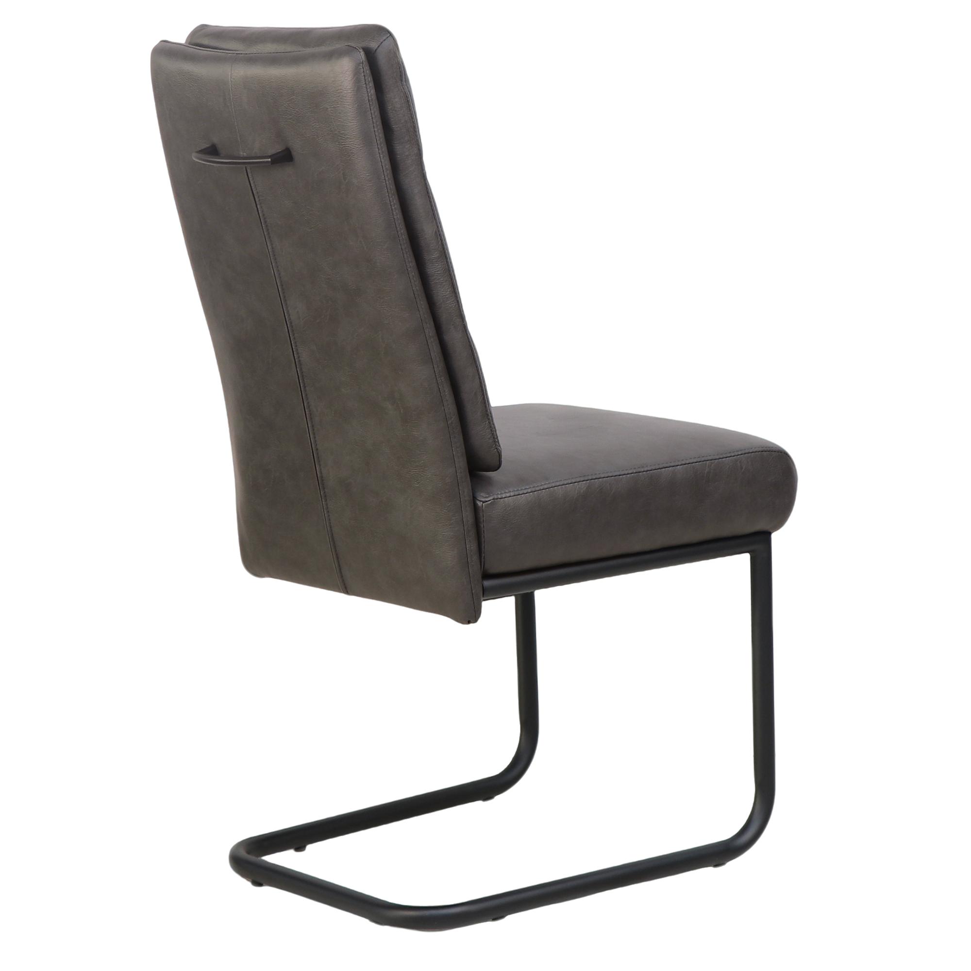 - Black metal c-style base and handle on chair back