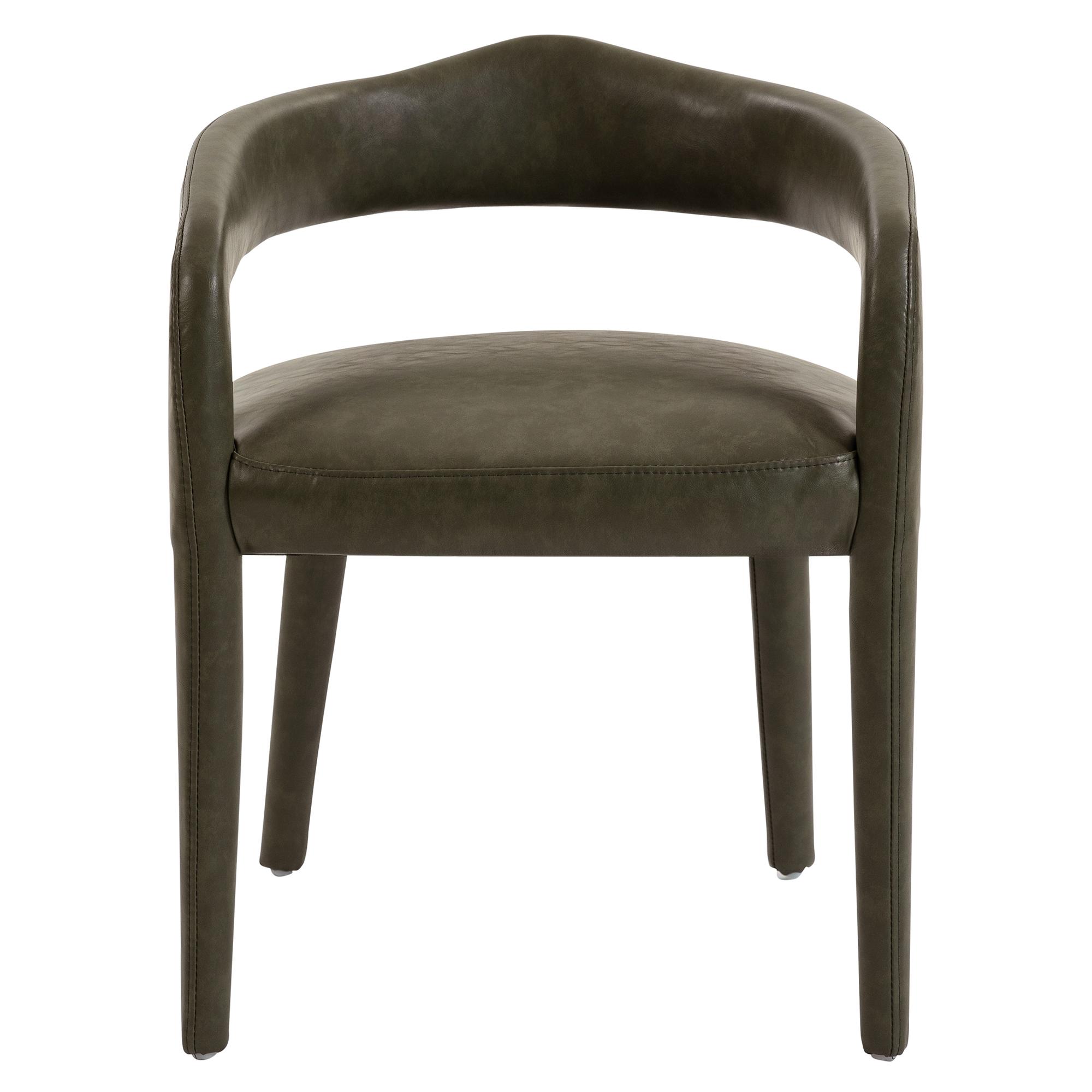 - Fully upholstered back, seat and legs in a vintage faux leather