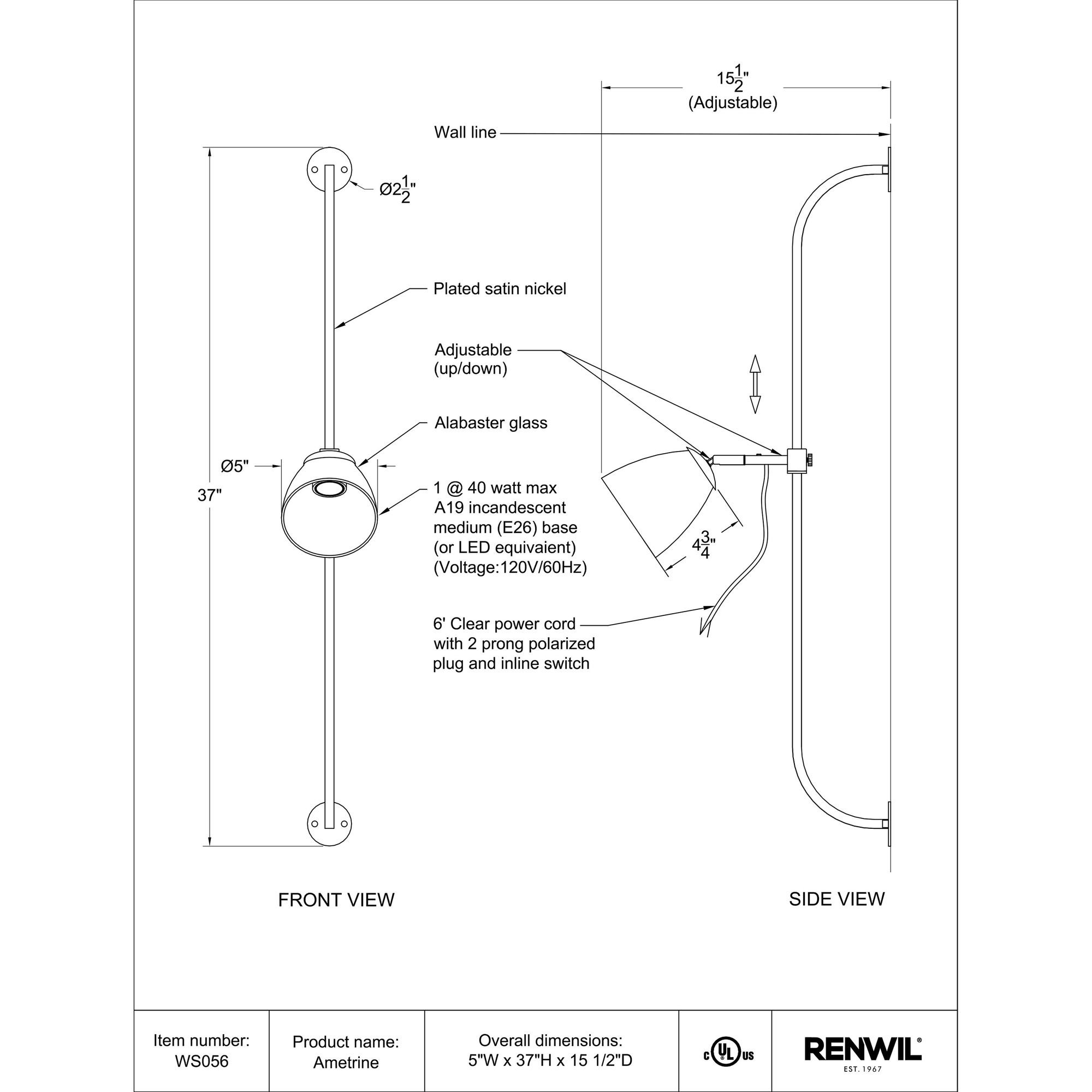 An alabaster glass shade is perfectly perched on this satin nickel-plated finished iron structure. An in-line switch makes for easy illumination. The adjustable light is a beautiful addition by your nightstand.