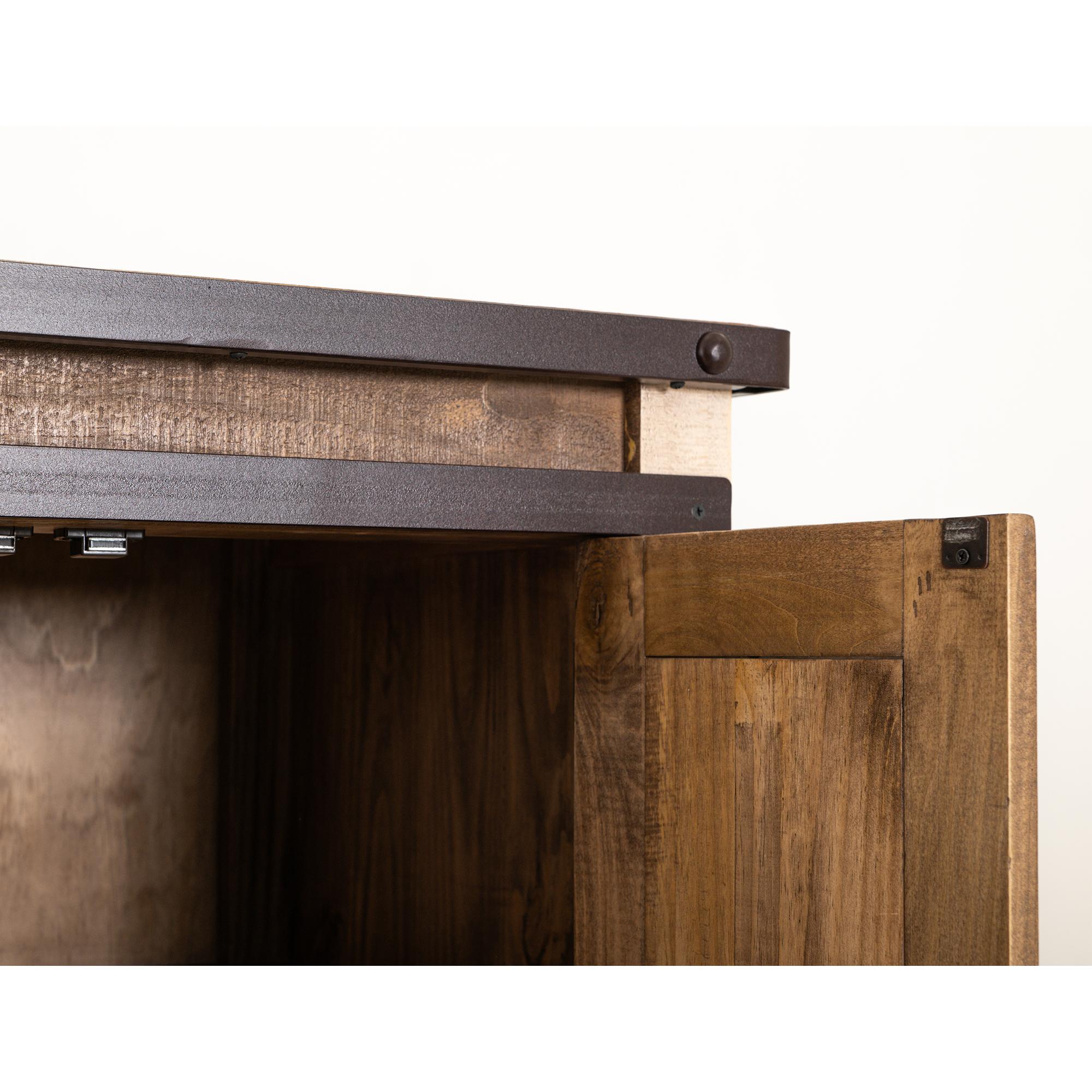 - Base and tops trims feature solid, hand-forged iron with nail-head detailing for an authentic rustic look.