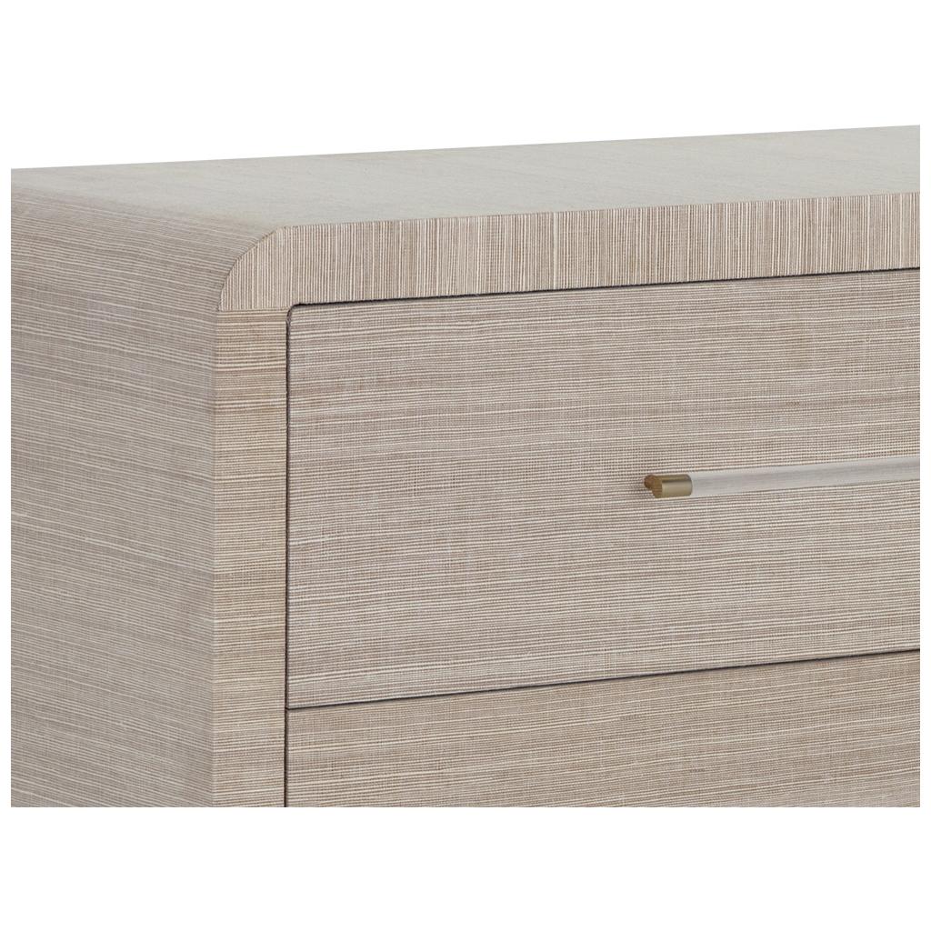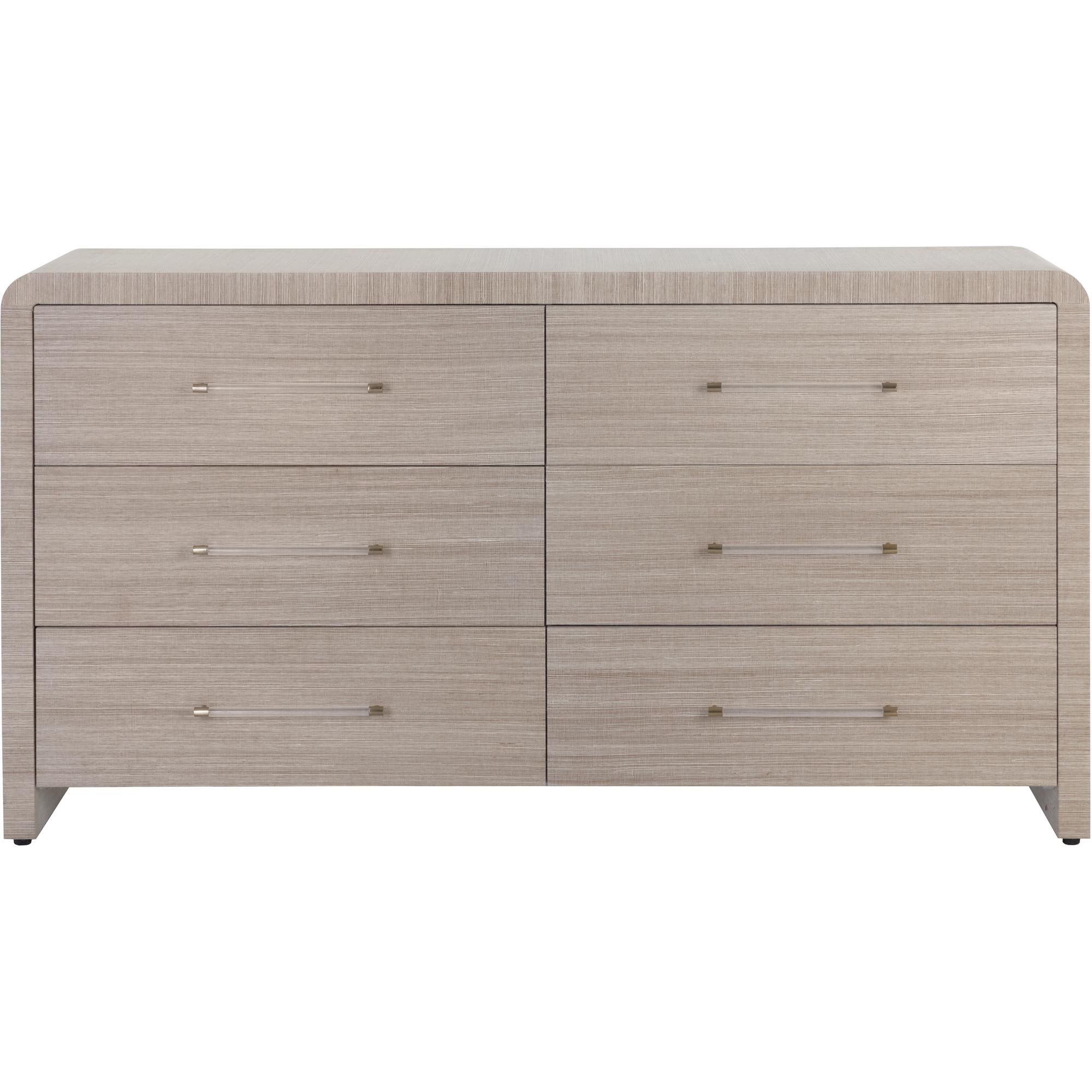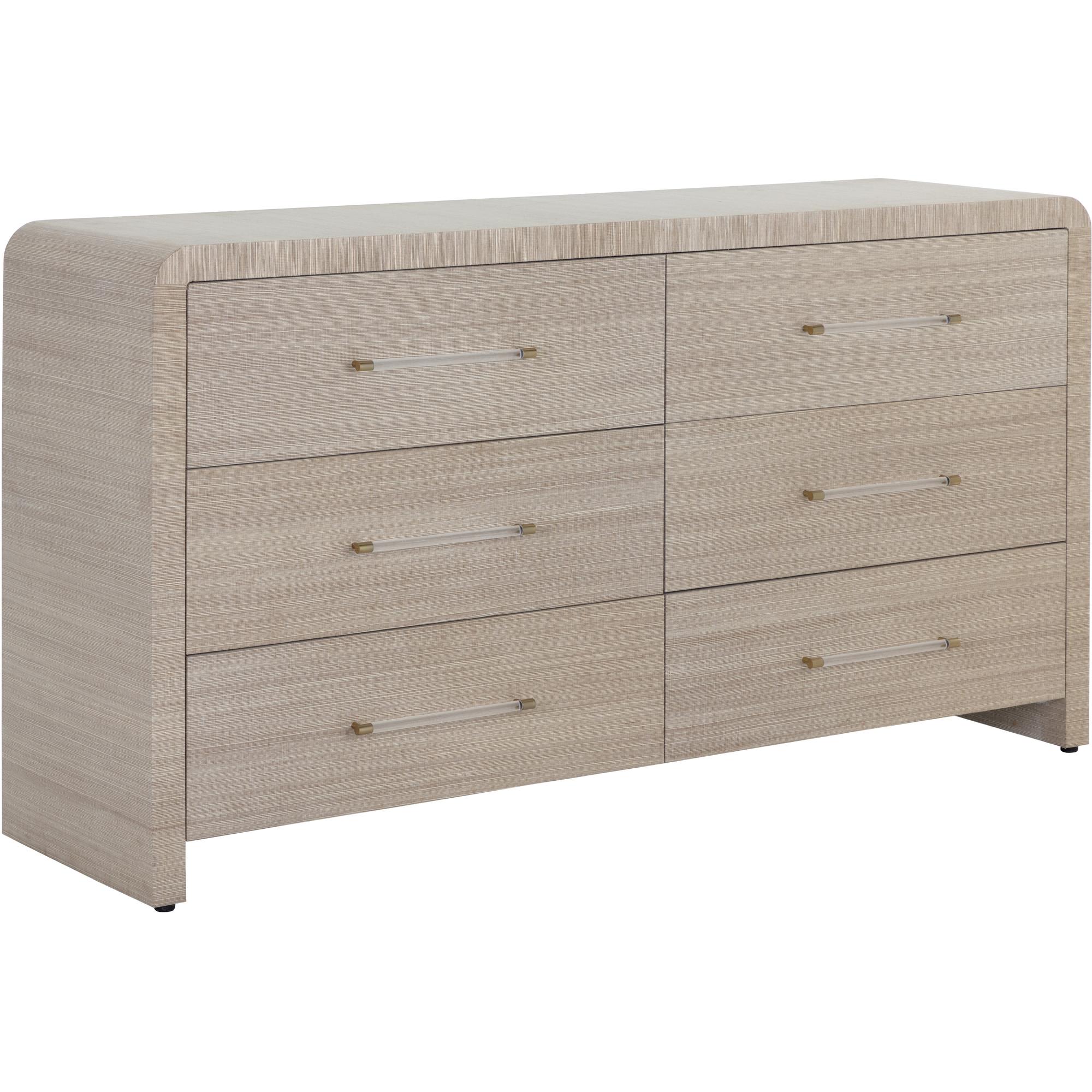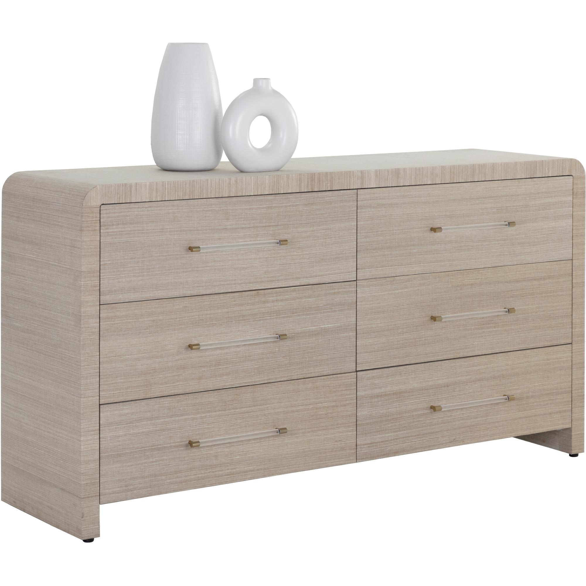 Fusing modern style with a design inspired by global travels, this richly textured dresser will add definition to any space. Crafted from a wooden frame with a sand raffia covering. Features six soft-closing drawers with steel and clear acrylic handles. Anti-tip kit included. Handle With Care: This design has been crafted with raffia. Each item will exhibit unique traits such as texture and thickness variations that add to the natural character of this finely woven material. Visit our Product Care page for more information on how to ensure the lasting beauty of this piece. As wood is an organic, porous material, these pieces will contain natural variation of texture and may also exhibit fine indentations and cracks. Wood pieces will also display a disparity of colour and grain, and visible knots and burls that add to the character of each piece.
