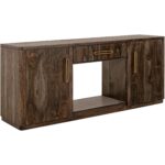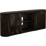 Our Black Balam collection is handcrafted from mango and teak wood. This simple yet stunning collection will bring an organic, modern touch to your space. This TV stand becomes the heart of your living space, featuring two drawers and two doors for ample storage and a design that highlights the wood’s unique grain. Now enhanced with a fireplace insert, it offers not only style but also a cozy ambiance. Pair it with two matching piers to form a stunning wall unit that frames your space with harmony and sophistication. Every detail speaks of artistry, transforming your home into a sanctuary where modern design meets timeless warmth.