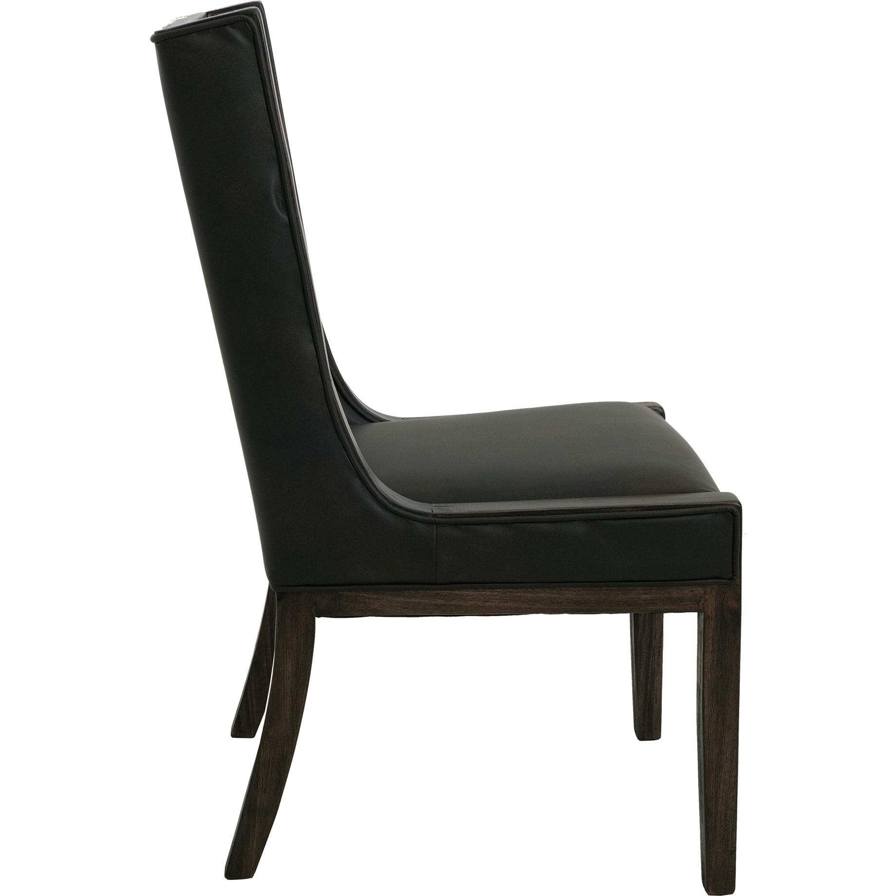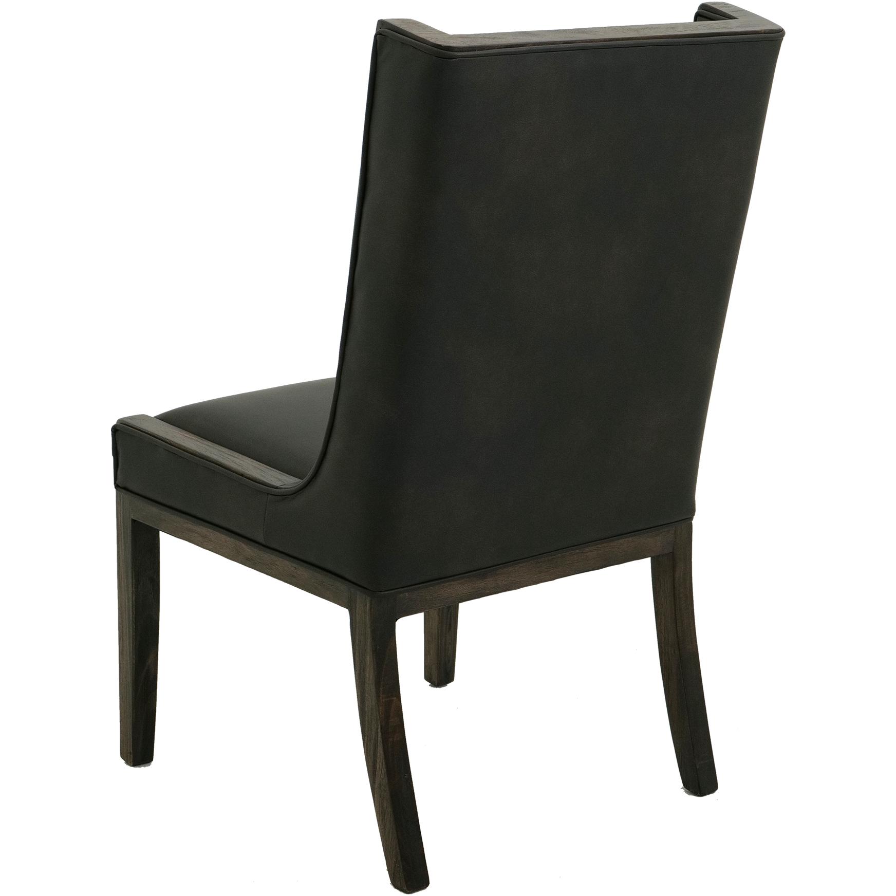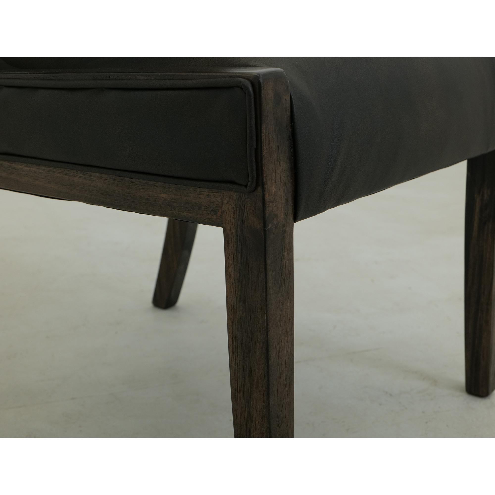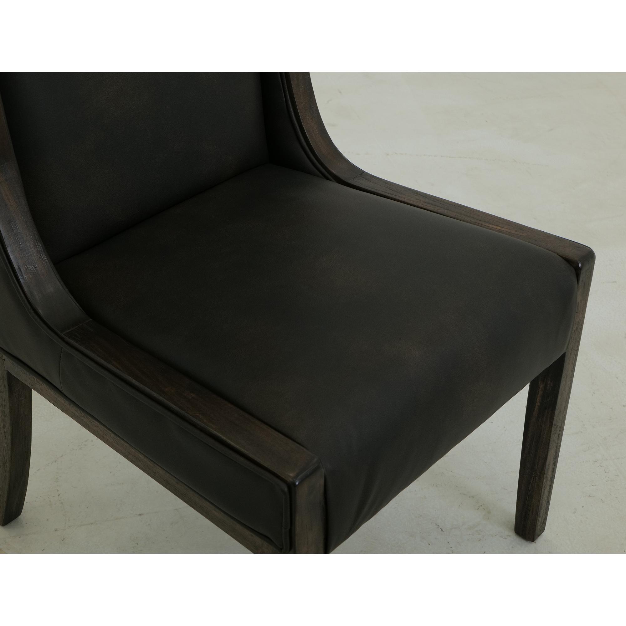- This chair is upholstered in faux leather. The rich texture and finish of the material provide both comfort and durability, making it an excellent choice for any dining setting.