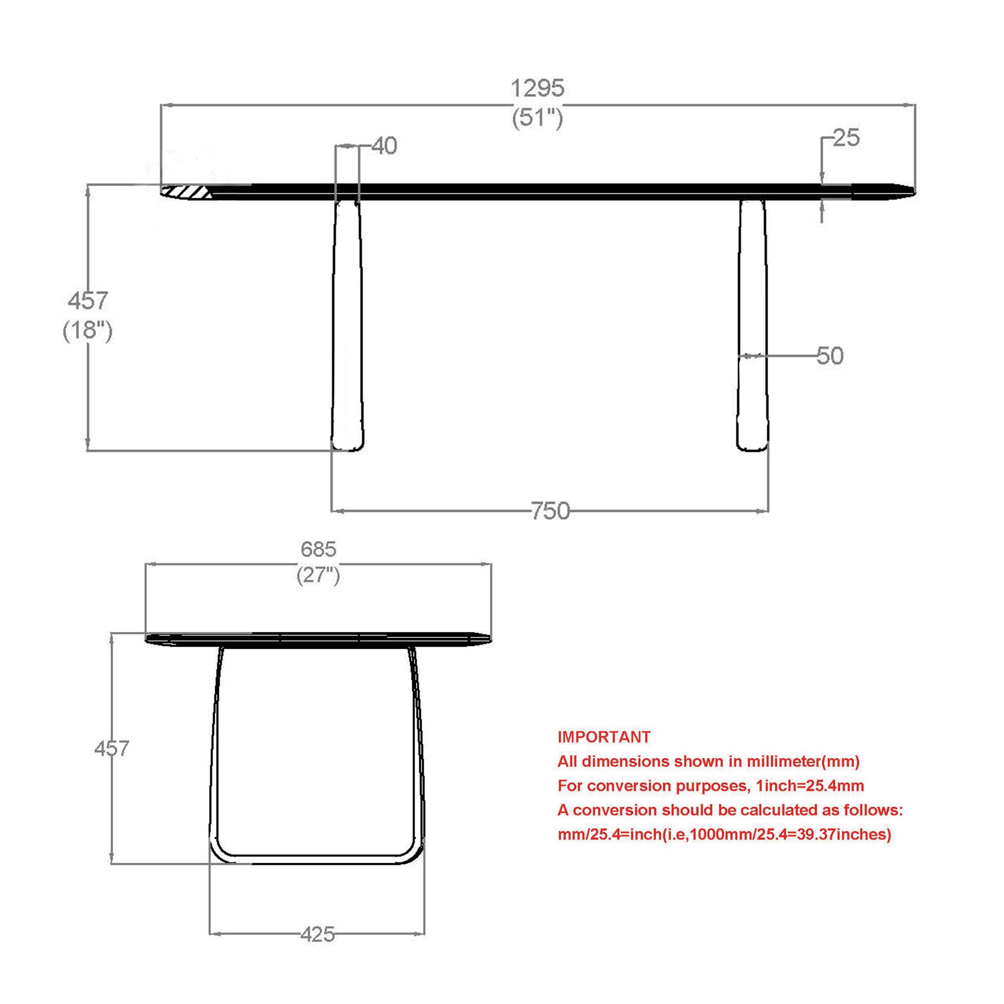 - Dimensions: 51 x 27 x 18″H