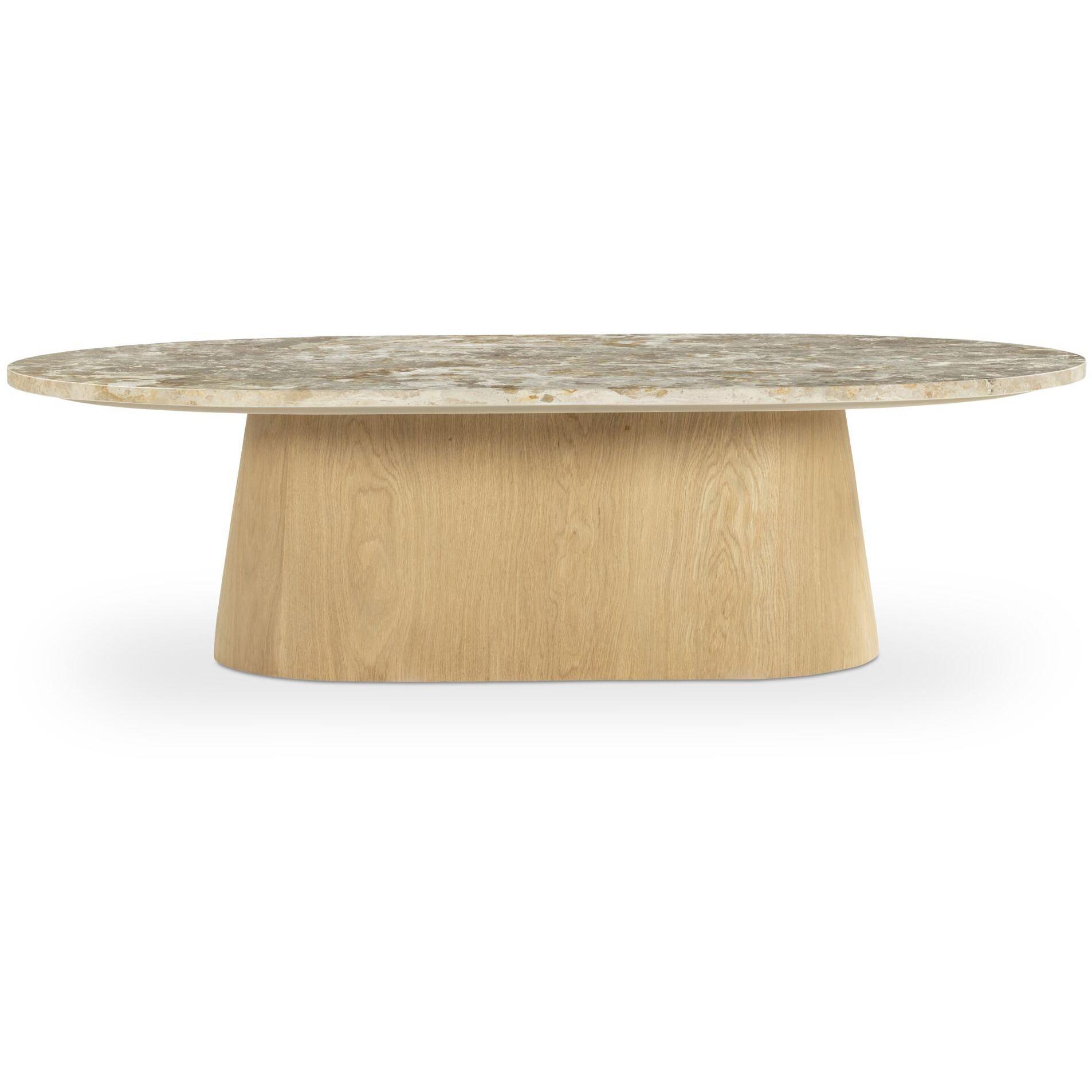 A cure for square spaces. Carly is all about the soft landing. Its capsule-shaped marble top rests on a slightly flared oak pedestal, picking up on the base’s rounded form. The warm wood draws out the marble’s natural veining, giving the whole piece a quiet sense of cohesion. Designed to round out sharper spaces, it brings sculptural balance where form meets feeling.
