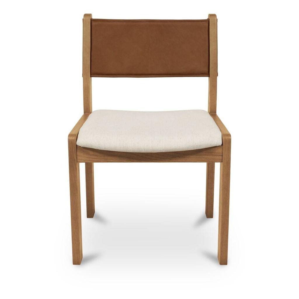 The chair that brings ease to the table. Carol pairs a rounded oak frame with a fabric seat and a tan top-grain leather back. A carved-back detail highlights craftsmanship, while the stretcher-free base keeps the profile clean. Built for comfort and longevity, Carol brings a grounded, inviting presence to any dining space—clean, modern, and ready to settle in.
