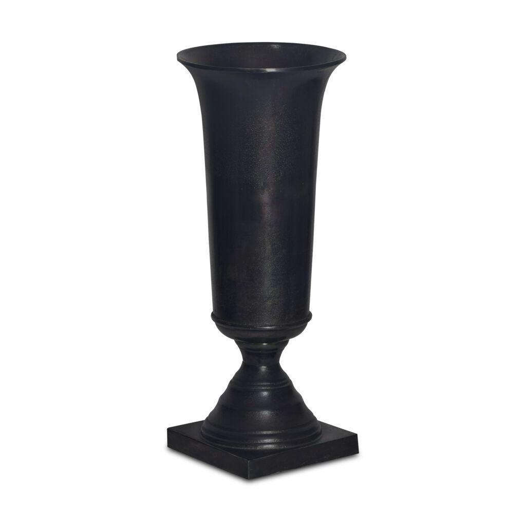 - Cast Aluminum: Tall, classic cast aluminum vase with a traditional fluted shape, circular detailing at the base, and a vintage Art Deco feel.