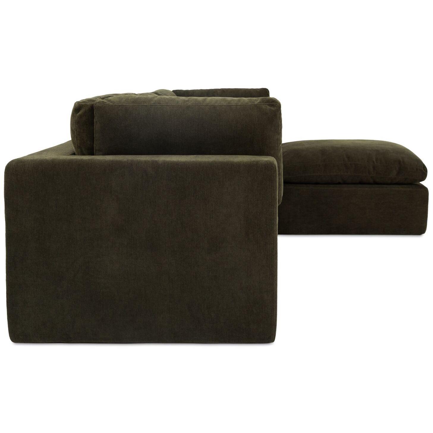 - Streamlined Style: Scaled for smaller spaces, this clean-lined, wide-armed sectional adds bold presence and laidback comfort in a deep green tone.
