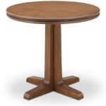 With its traditional silhouette, the Charles cafe table features a thick tabletop accented with a double bullnose edge for a touch of classic beauty. Resting on a four-legged base and crafted with a solid pine edge with pine veneer over plywood top and solid pine base, it showcases a clean finish that beautifully marries traditional elements with a contemporary flair designed to complement various interior styles.