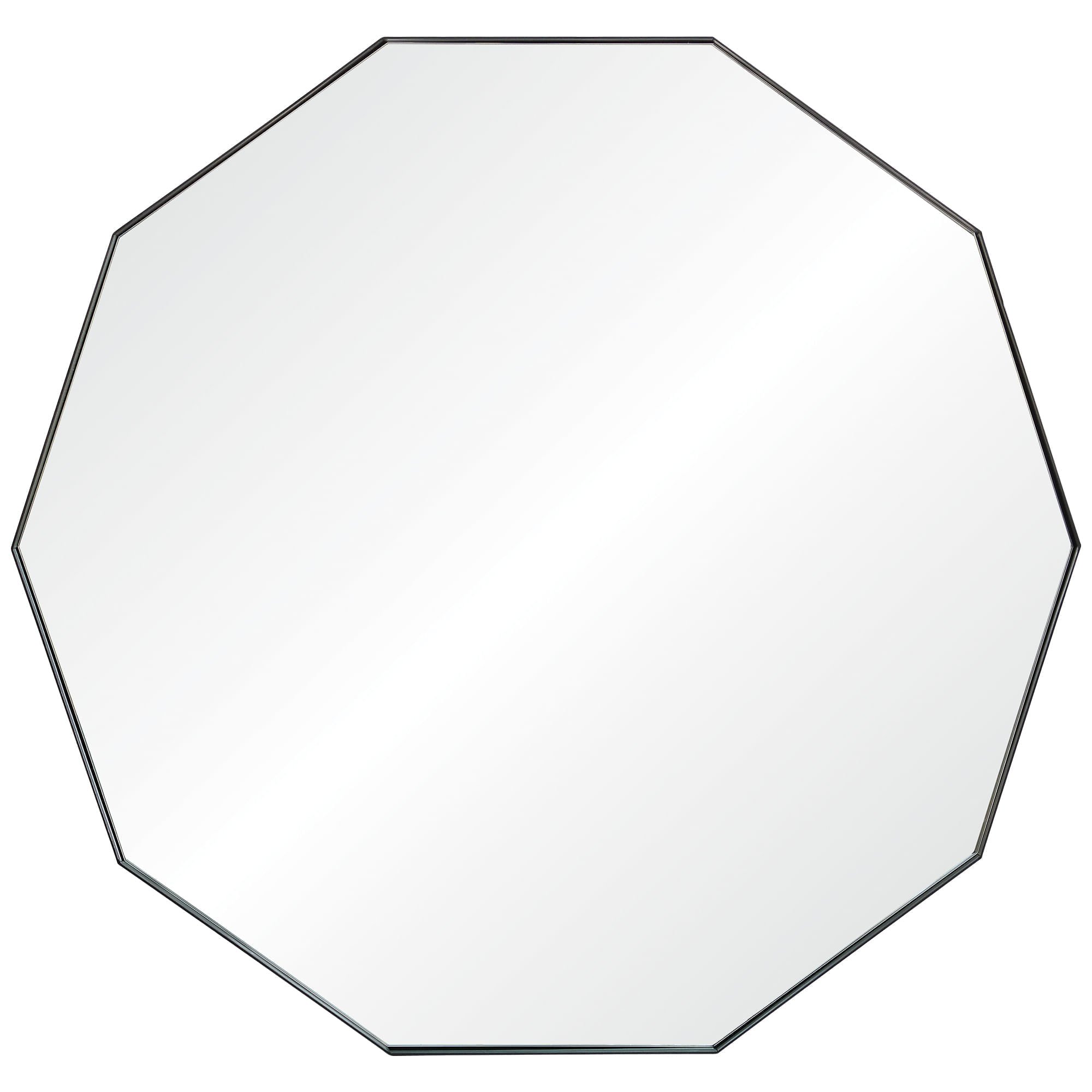 The angular design of this decorative wall mirror brings modern reflections to new dimensions. The 10-sided decagonal iron frame is finished in Matte black, with oversized proportions that exude glamour. A contemporary accent piece that plays with geometric principles of shape and scale, this large-format wall mirror hangs over couches and console tables, capturing every reflection in the room.