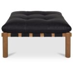 - Crafted details: With tufted top, rounded oak legs, and leather strap detailing creates a contemporary look rooted in timeless craftsmanship.