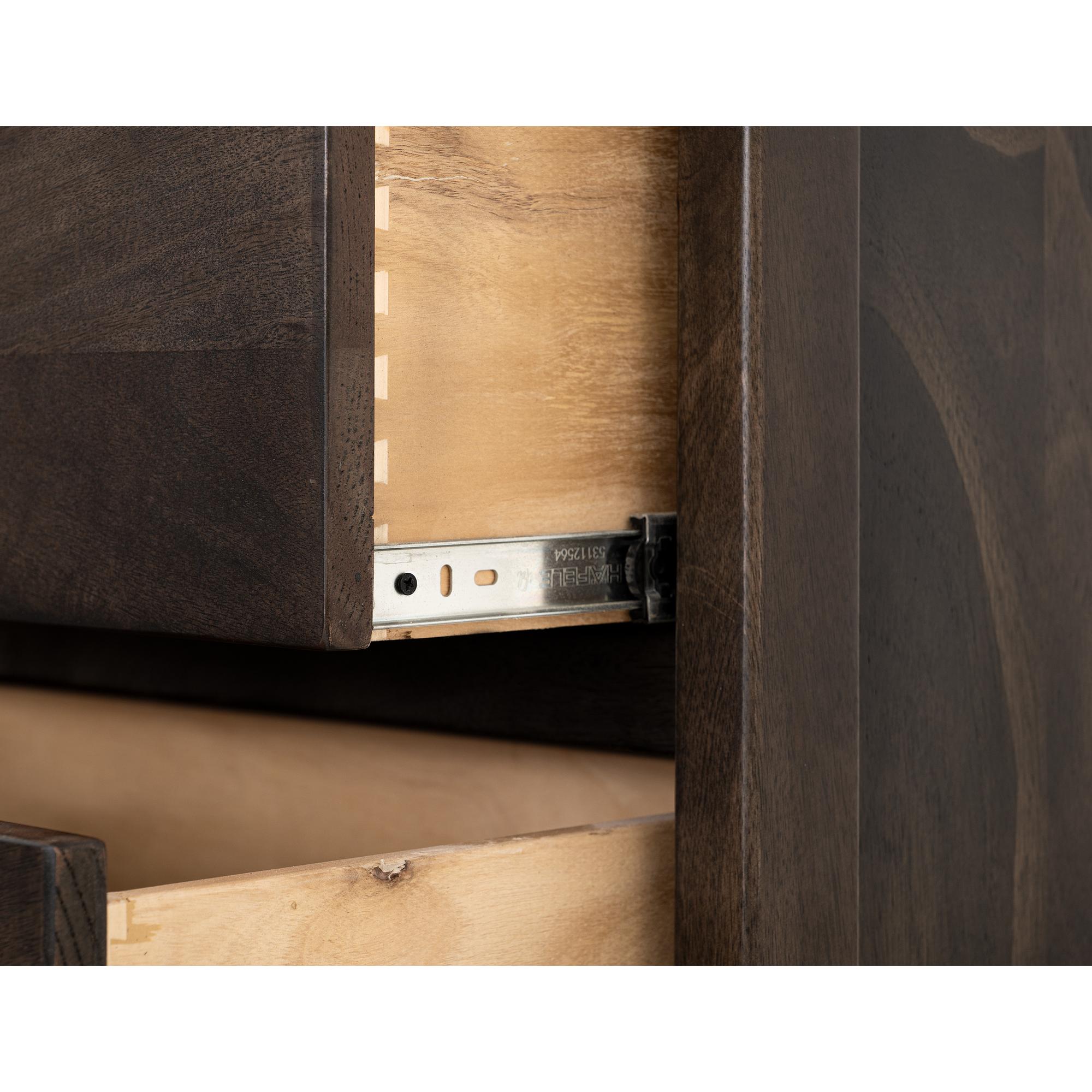 - English dovetail on 100% solid wood drawer fronts. Hafele steel glides.