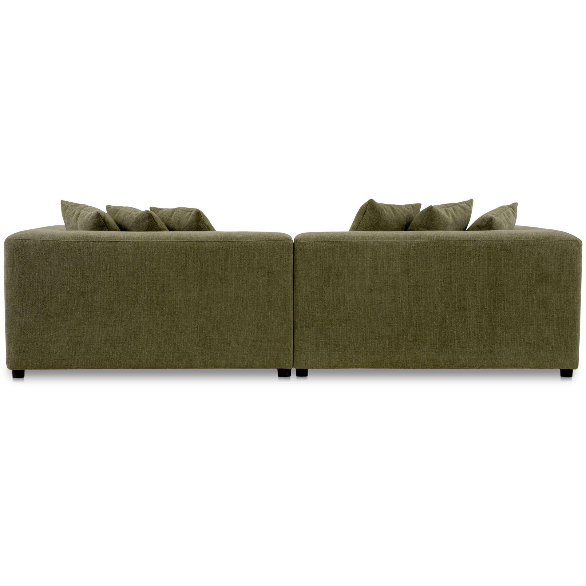 - Plush cushions feature a foam core wrapped with feather & fiber