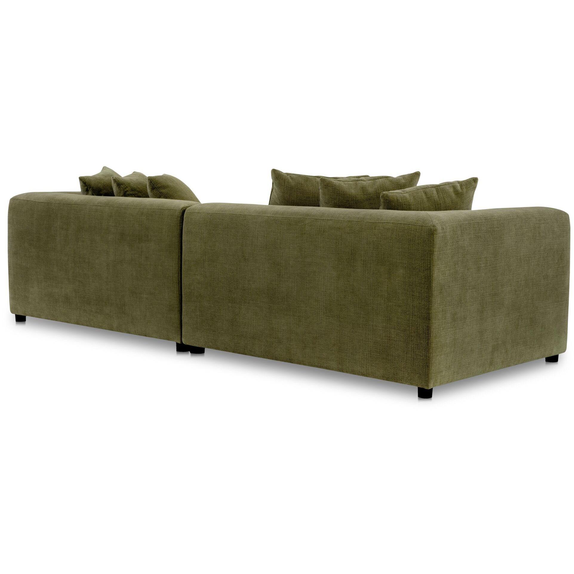 The Davie Sofa’s generous scale and deep seat invite serene relaxation. Tufted seat cushions adorned with feather and fiber toppers create a plush landscape made for lounging. The two-piece sofa in velvety chenille upholstery offers a flexible arrangement as six loose back pillows create personalized comfort.