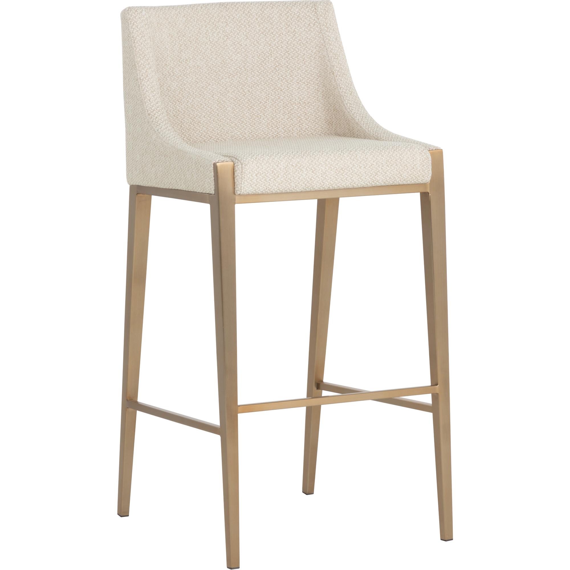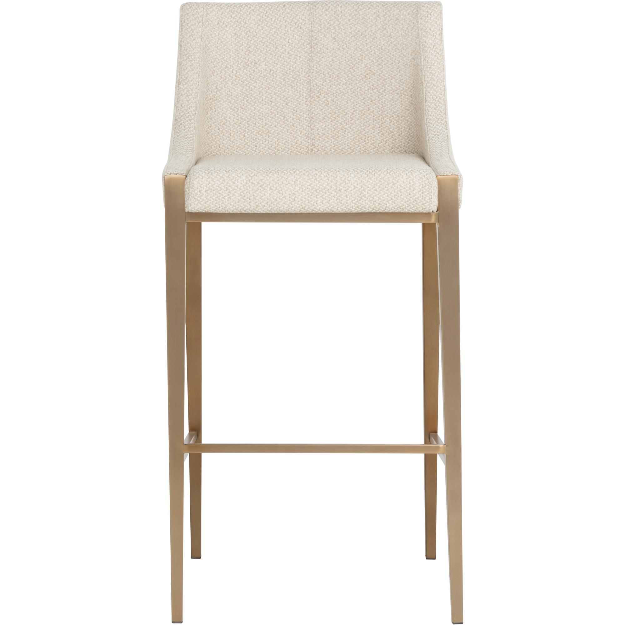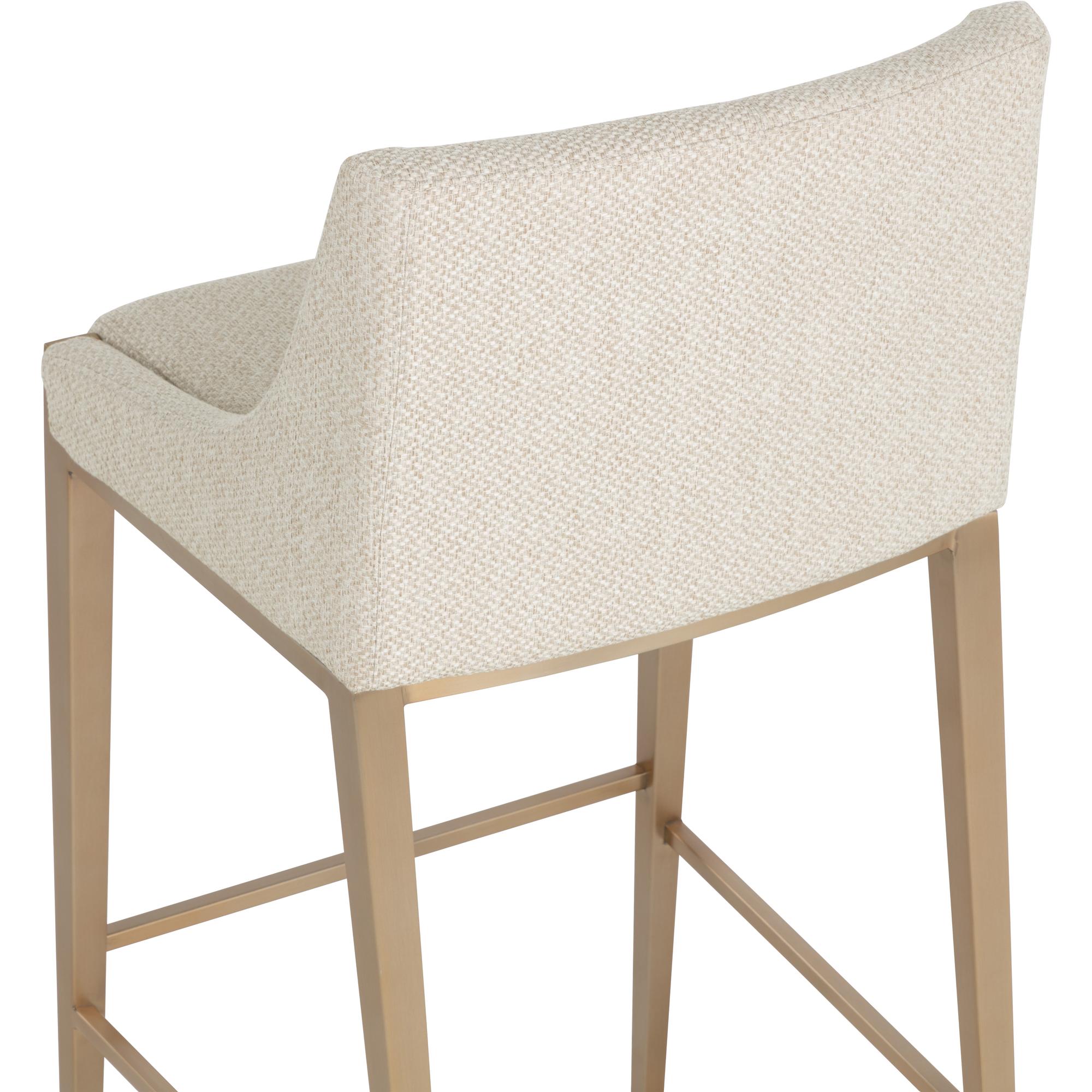 With its clean and modern design, this barstool is a stunning addition to any dining space. Stocked in our textured monument oatmeal fabric and completed with powder-coated stainless steel legs in an antique brass finish.