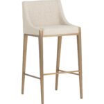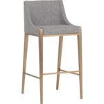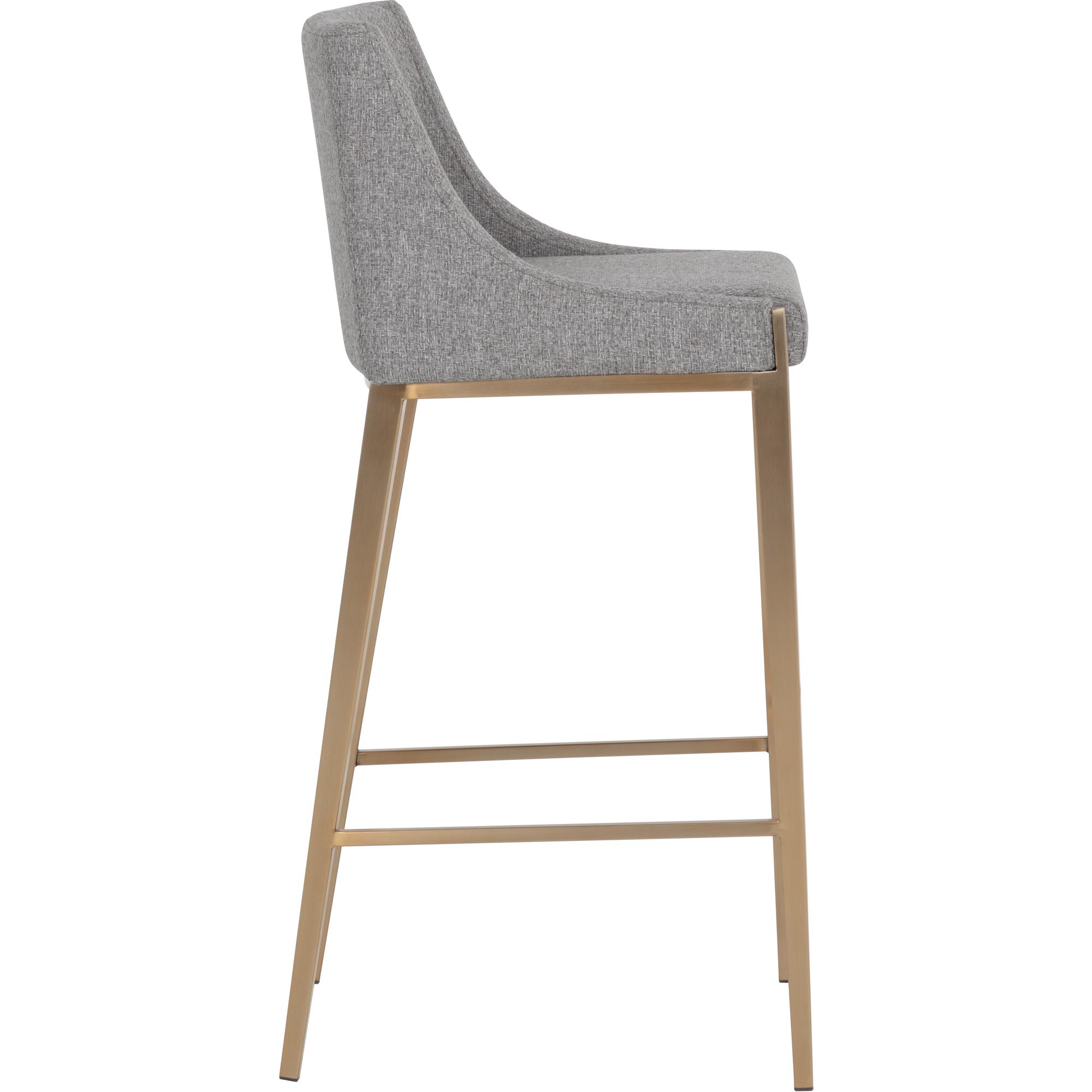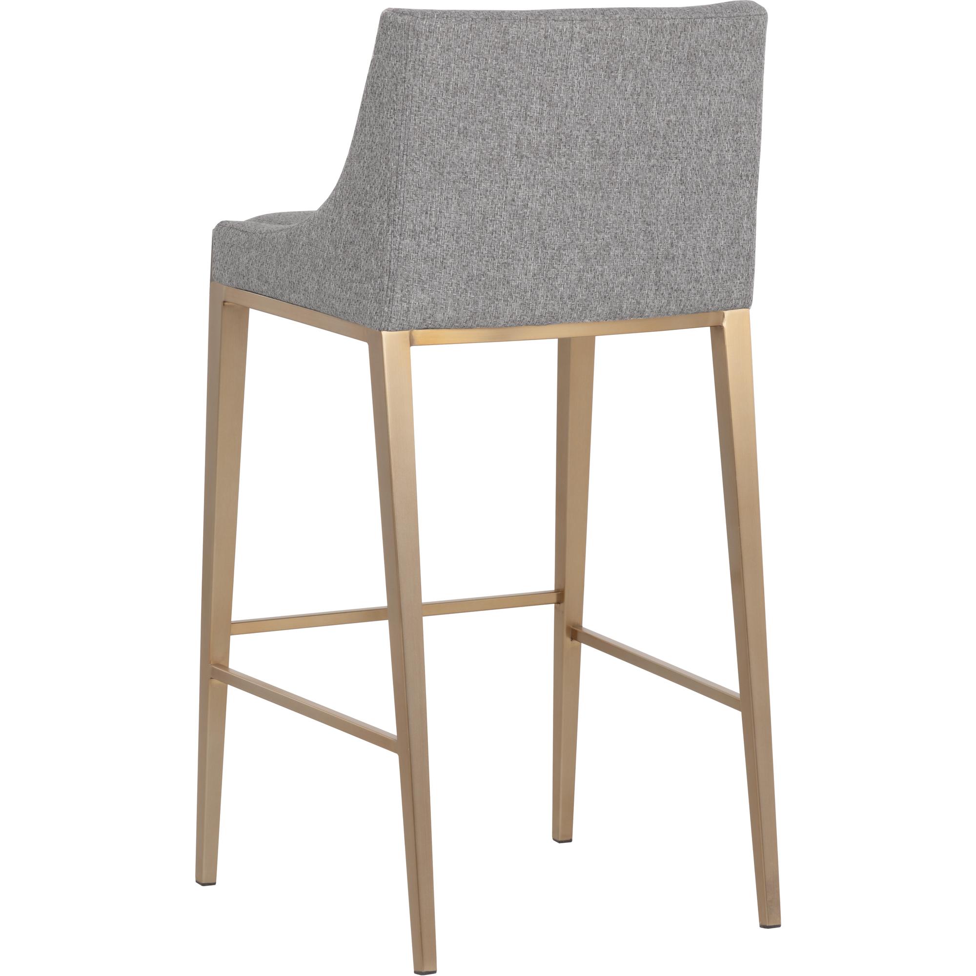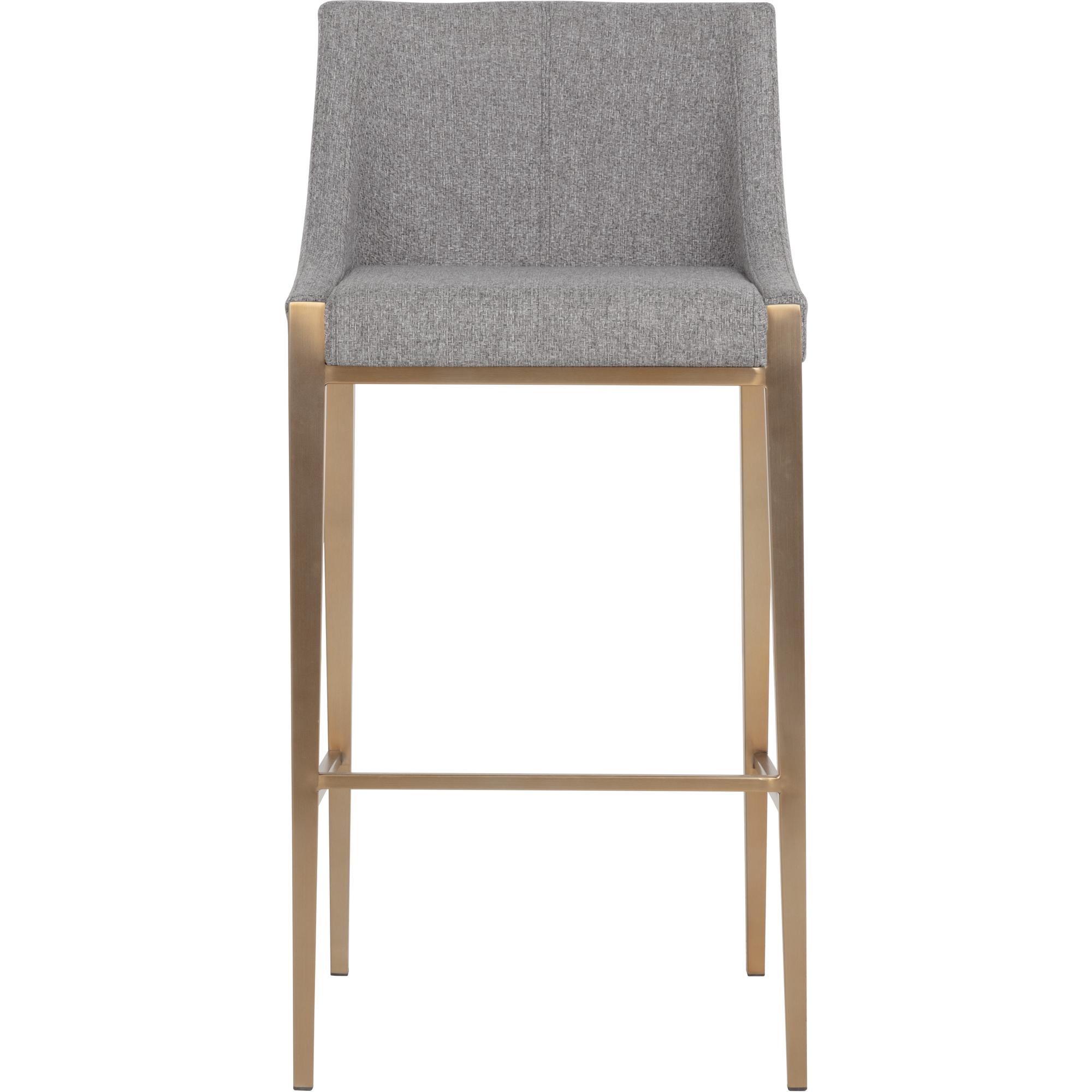With its clean and modern design, this barstool is a stunning addition to any dining space. Stocked in our textured monument pebble fabric and completed with powder-coated stainless steel legs in an antique brass finish.