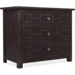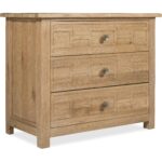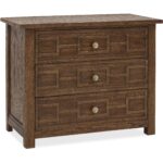 - Features: Three self-closing drawers with geometic pattern on drawer fronts