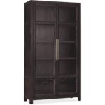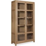 Four adjustable wood shelves with plate groove - Material: Oak Solids, Oak Veneers and Seeded Glass