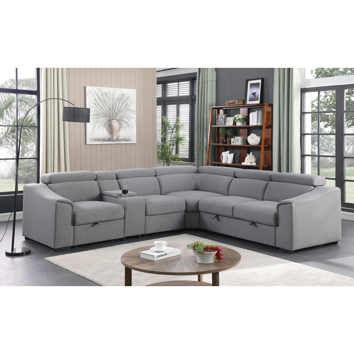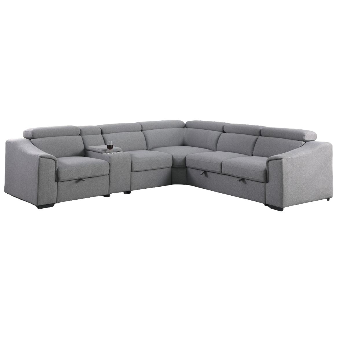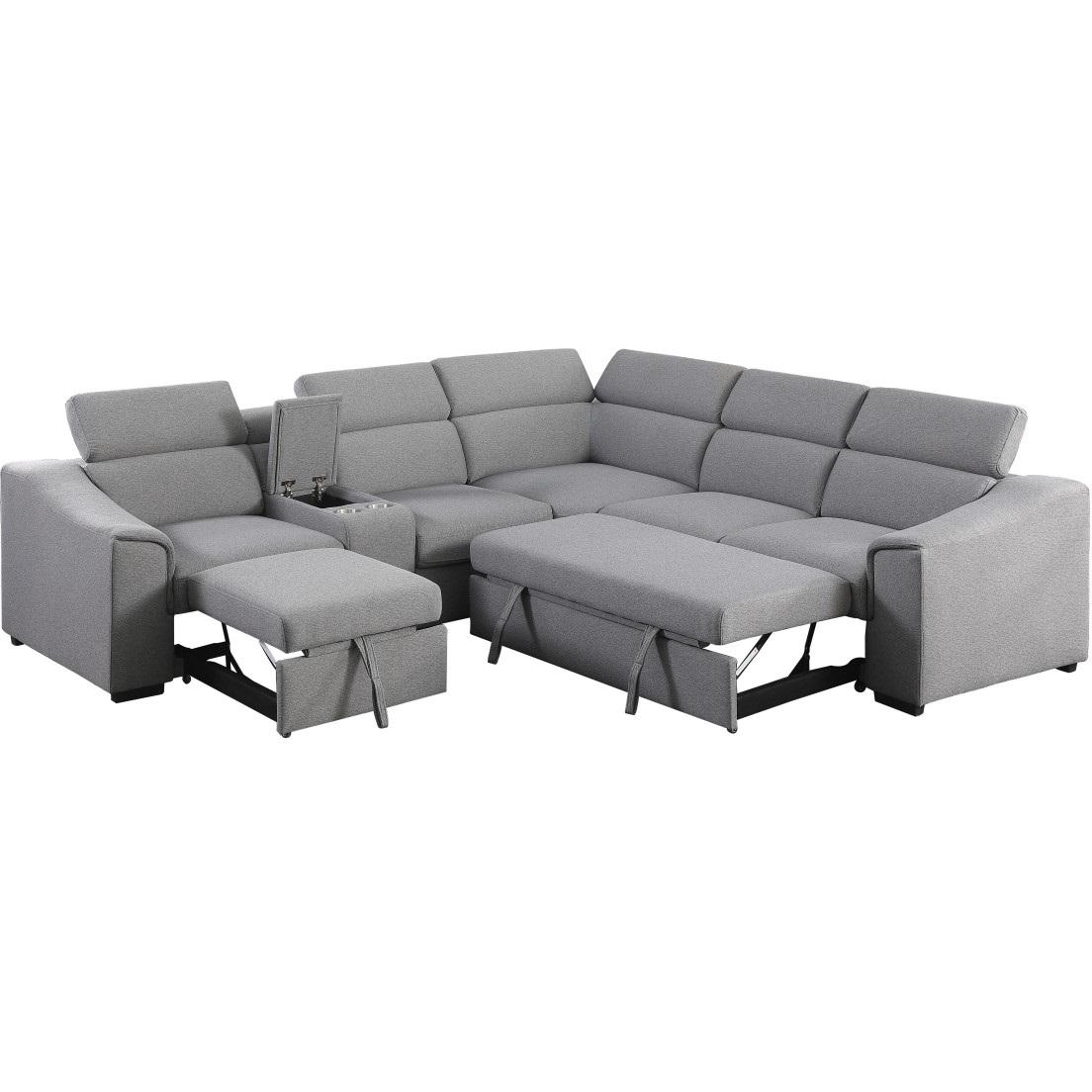 Introducing the Emmett Sectional Sofa Bed in Urban Grey, a versatile and stylish addition to your living space. With its contemporary design and practical features, this sectional sofa bed offers comfort, functionality, and a touch of modern elegance. Designed with contemporary styling, the Emmett Sectional Sofa Bed effortlessly blends into modern interiors, adding a sleek and sophisticated touch to your living room. Its clean lines and urban grey color create a chic and trendy atmosphere, perfect for those who appreciate contemporary aesthetics. This sectional sofa bed is more than just a seating solution. It features a pull-out bed, allowing you to easily accommodate overnight guests and provide them with a comfortable sleeping space. The armless chair also comes with a pull-out bed, giving you even more options for seating and sleeping arrangements. In addition to the pull-out beds, the Emmett Sectional Sofa Bed offers practical storage solutions. The storage console is equipped with built-in cupholders, providing a convenient spot for your beverages while you relax. There is also a pull-out storage compartment, allowing you to stow away blankets, pillows, or other items, keeping your living room neat and organized. To enhance your comfort, the sectional sofa bed features adjustable seat backs. This feature allows you to customize the angle and position of the seat backs, providing optimal support and relaxation for each individual. Whether you prefer to sit upright or lounge back, this adjustable feature ensures your comfort is prioritized.