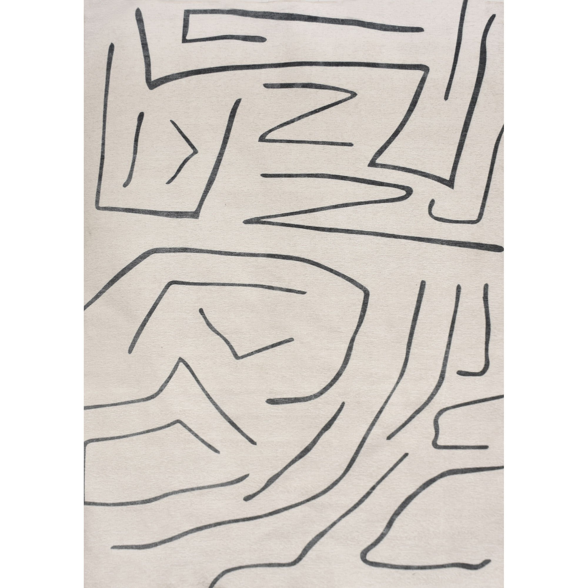 Minimalism and tribal-like inspiration come together to create this unique rug design. No matter if the selection is large or small, this piece pops within the home. Featuring a beige base and black strokes, its contrasting tones enhance its designer quality.