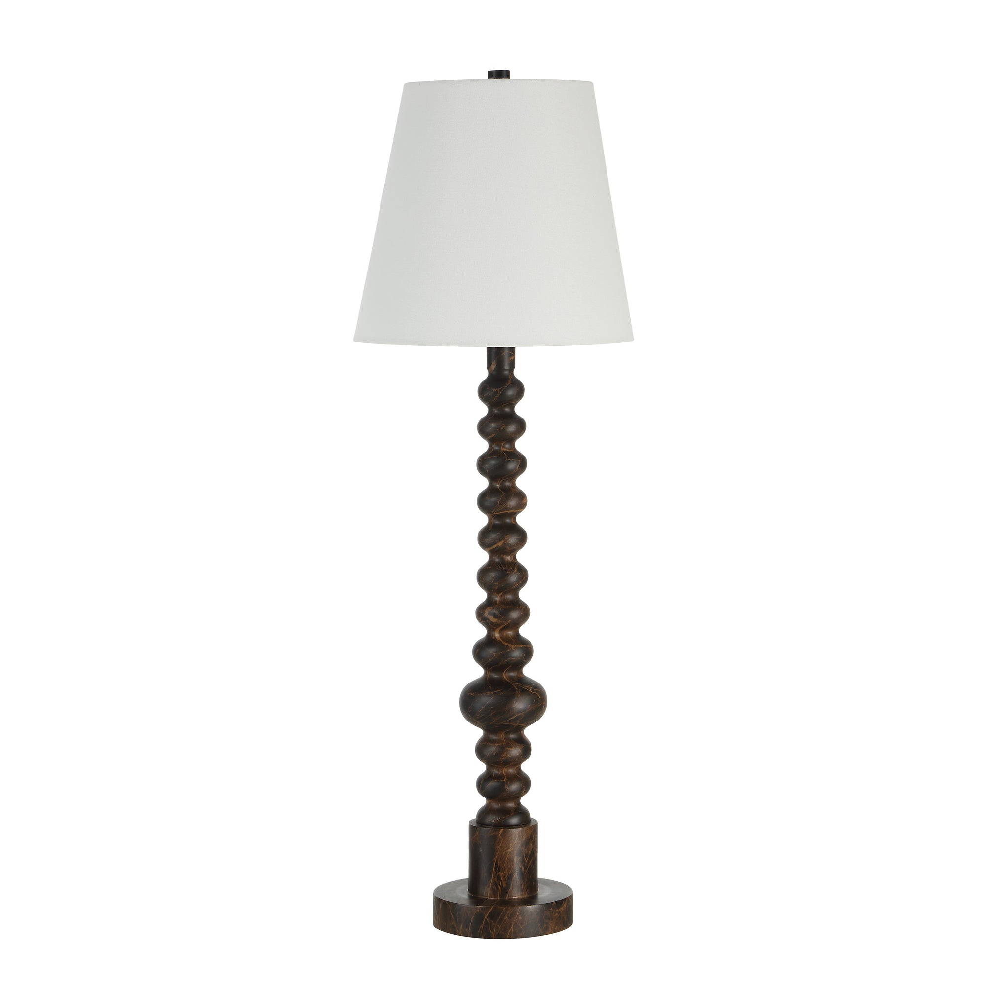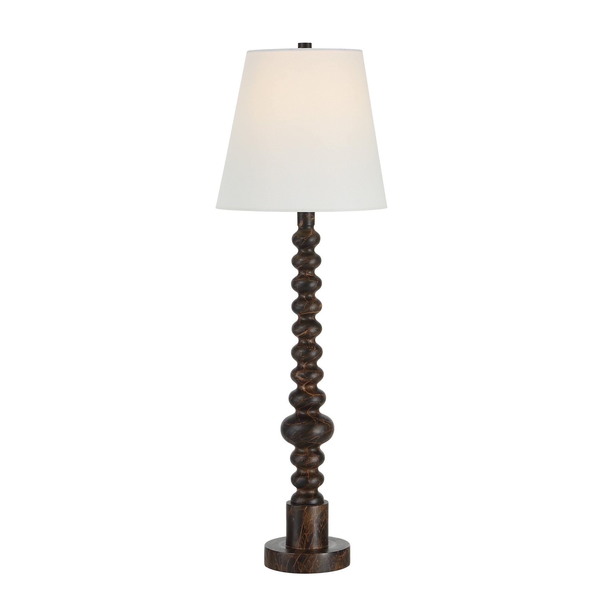 The Famar table lamp combines bold design with subtle elegance. Its black marble-effect base contrasts beautifully with a clean off-white linen shade, creating a striking focal point. A rotary dimmer lets you customize the light, while its sleek, contemporary lines bring texture and sophistication to modern or transitional interiors alike.