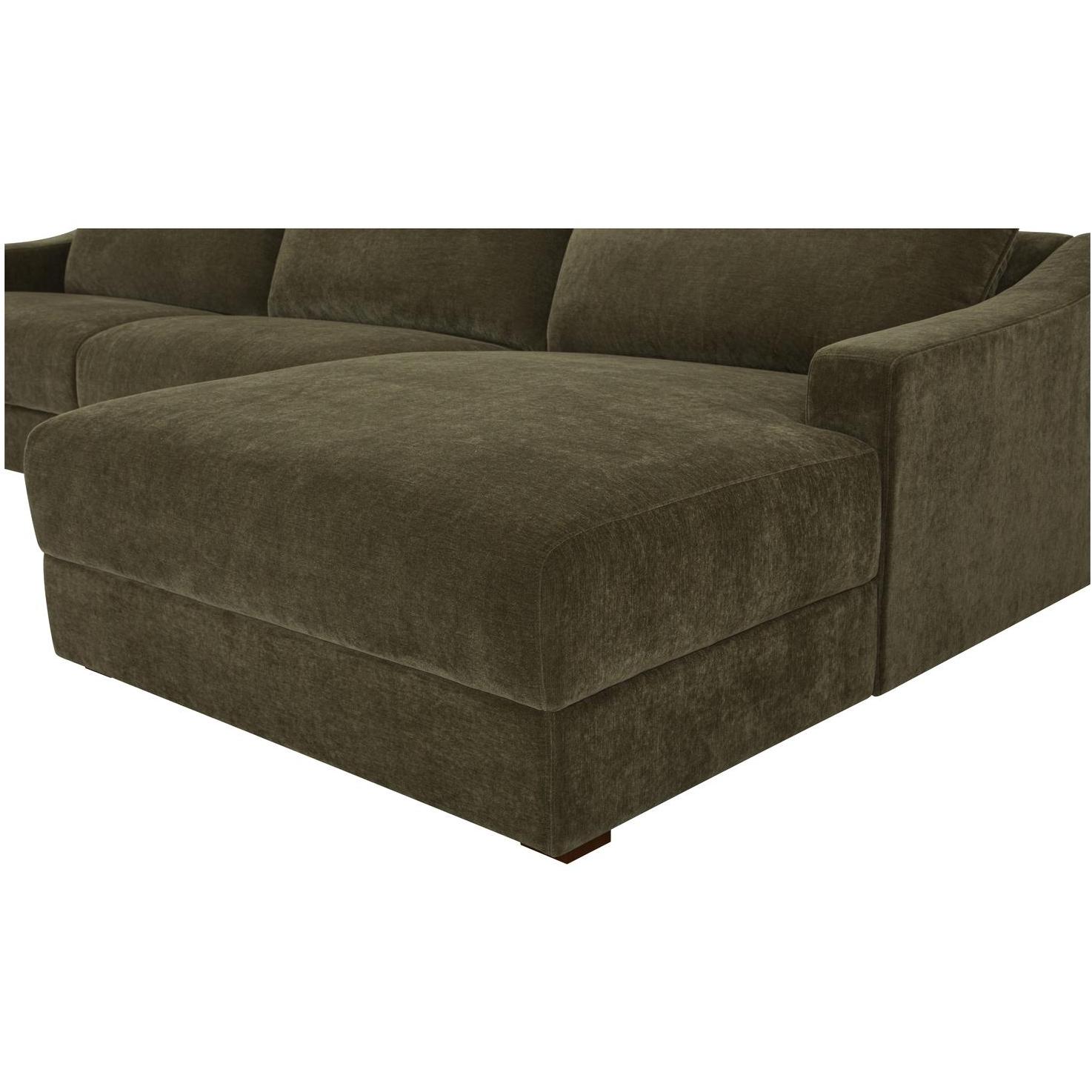 Seating that doubles as a mood-setter. The Farrow Sectional pairs deep, fiber-filled cushions with sloped arms and piped edges for polish. Upholstered in velvety cedar green with a subtle sheen, it’s fully wrapped and balanced on an invisible base for a clean-lined look. Designed with the right-facing chaise, this sectional shifts easily between classic and contemporary, always landing on timeless comfort.