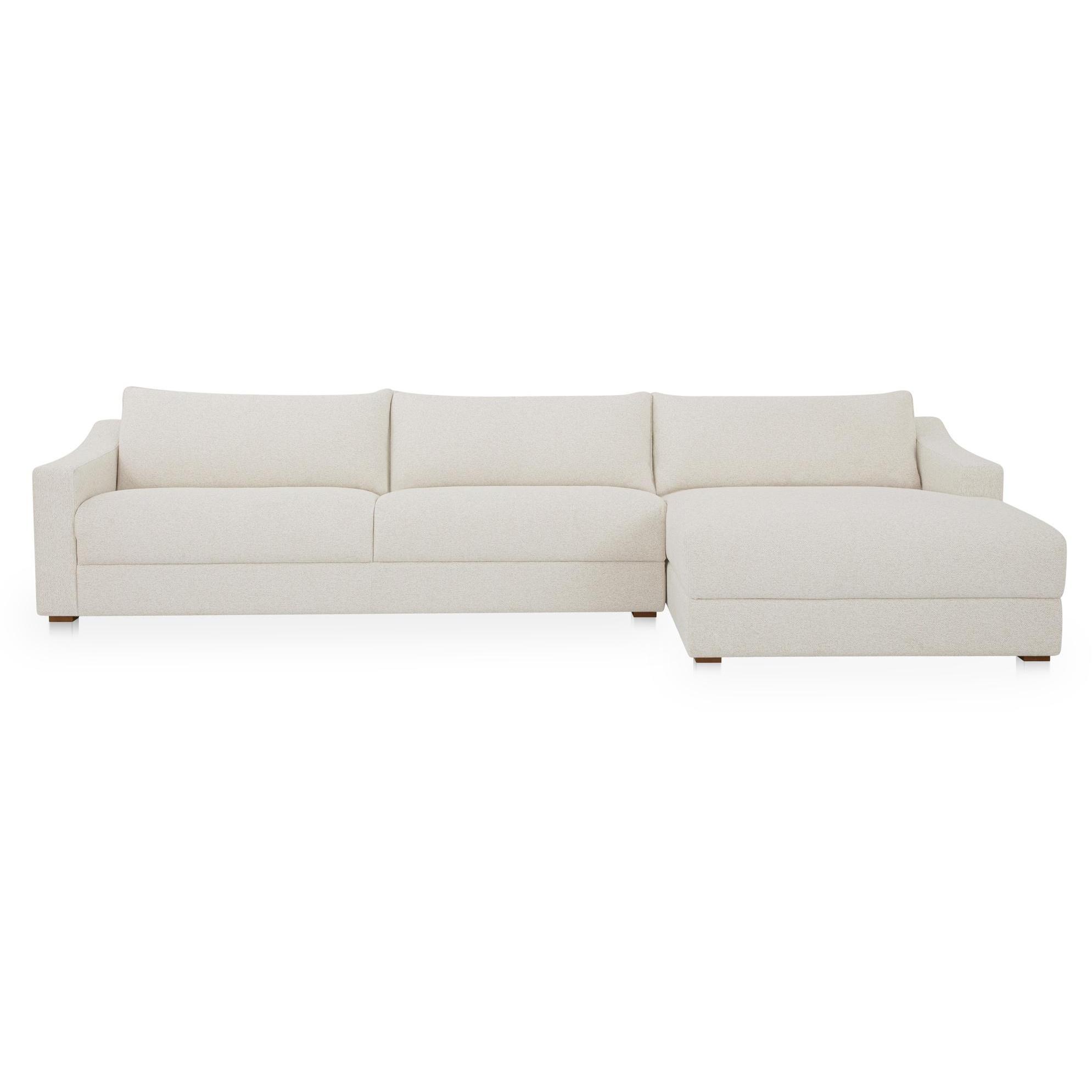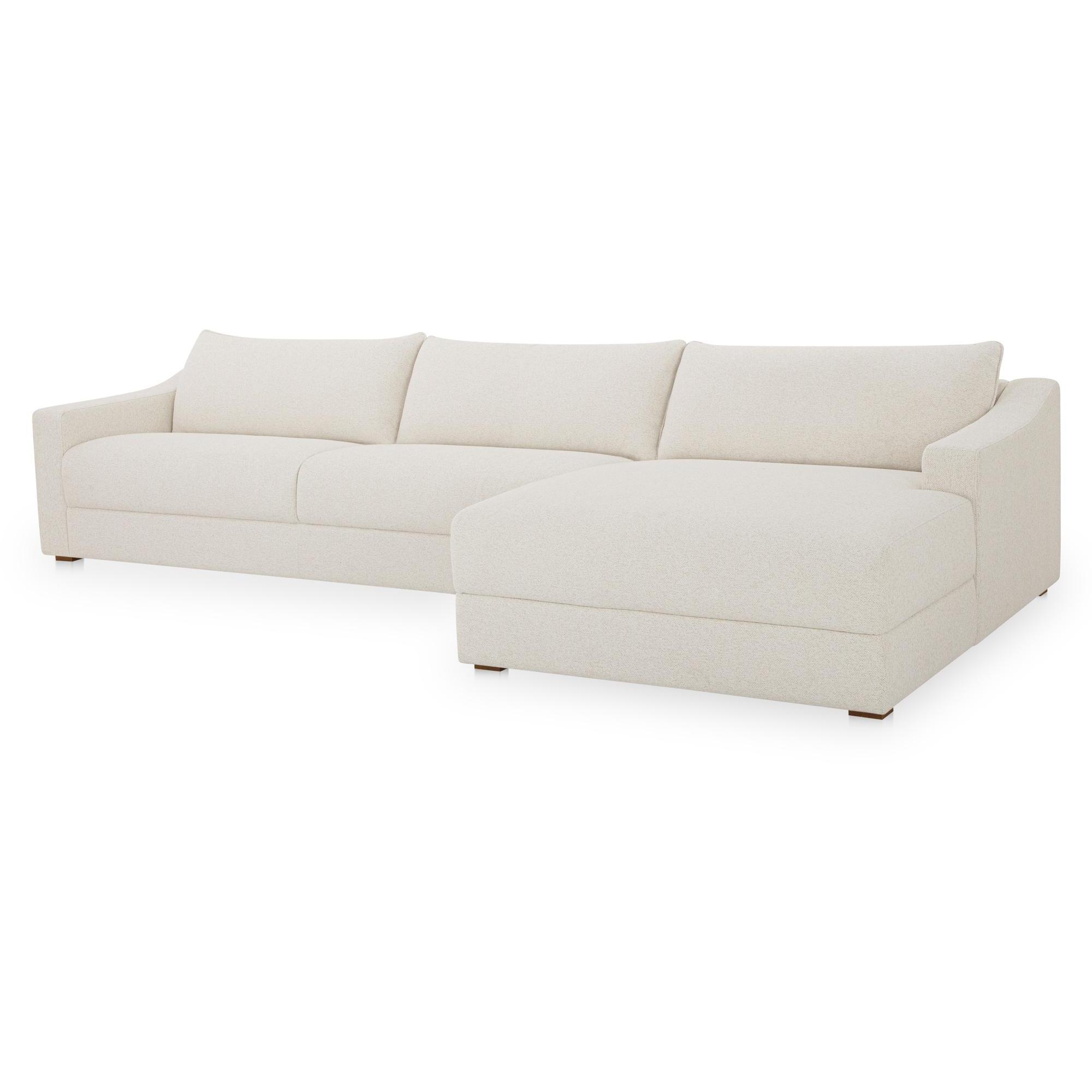 When your living room calls for more than a sofa. The Farrow Sectional combines deep, fiber-filled cushions with a gentle arm slope and piped edges for polish. Upholstered in flecked oat with a textured finish, it’s fully wrapped and grounded on an invisible base for a seamless look. Designed with the right-facing chaise, this sectional adapts from traditional to contemporary with timeless ease.