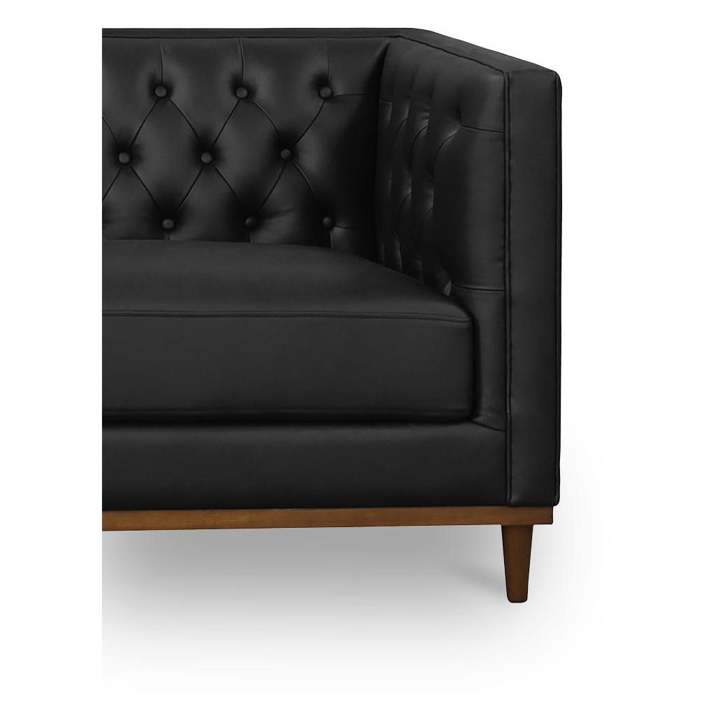 The Fielder sofa combines traditional elegance with contemporary resilience, featuring top-grain Brazilian leather upholstery with slight, elegant embossing and very light finishing. The classic form includes tufted details, providing a nod to traditional aesthetics, while the clean lines and warm walnut finish on the wooden base inject a modern touch.