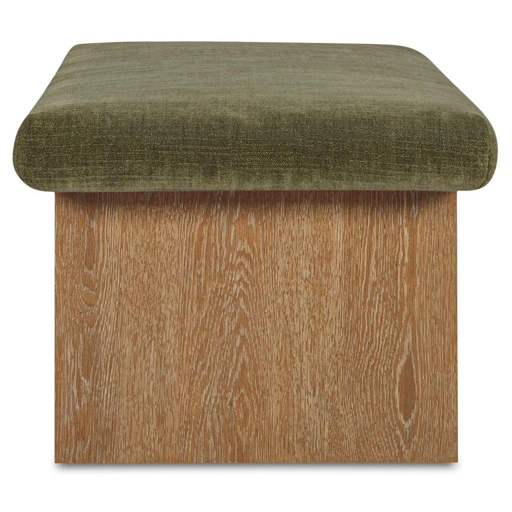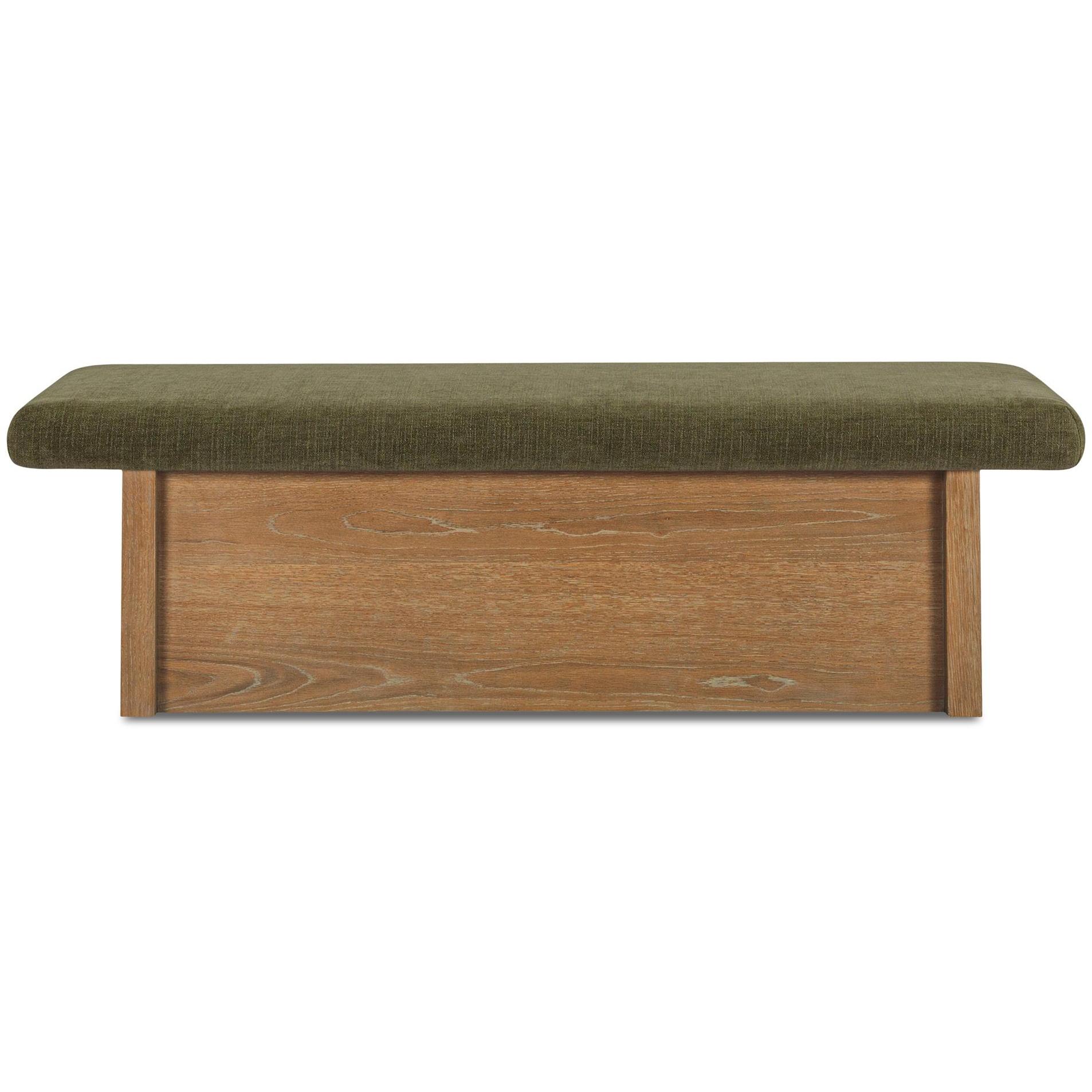 - Rich Color, Clean Lines: Dark green upholstery brings depth to a streamlined bench profile, balanced by a wire-brushed oak veneer base for contrast.