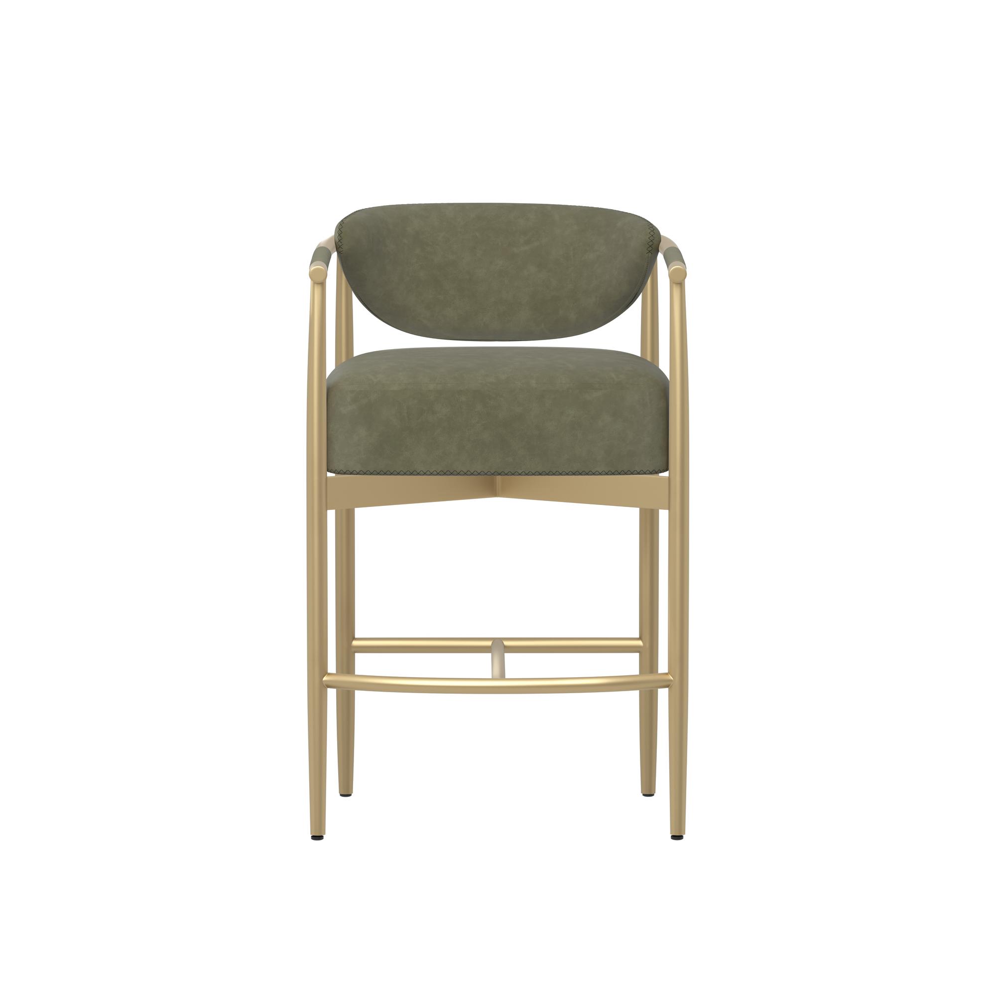 Every detail that makes up the handsome Heloise Counter Stool is designed with purpose. Ivanhoe pine faux leather upholstery and rope detailing is paired with powder-coated gold stainless steel for optimal style and comfort. Visible stitching on the seat and backrest accentuates the chair’s smooth contours. This elegant counter stool will perfectly complement any dining space. Handle With Care: This design has been crafted with faux leather. Faux leather is manufactured to reflect the natural characteristics of leather; as such, colour variations, markings, wrinkles, grooves, and light scratches are appreciated characteristics. No two pieces will be alike. Visit our Product Care page for more information on how to ensure the lasting beauty of this piece.