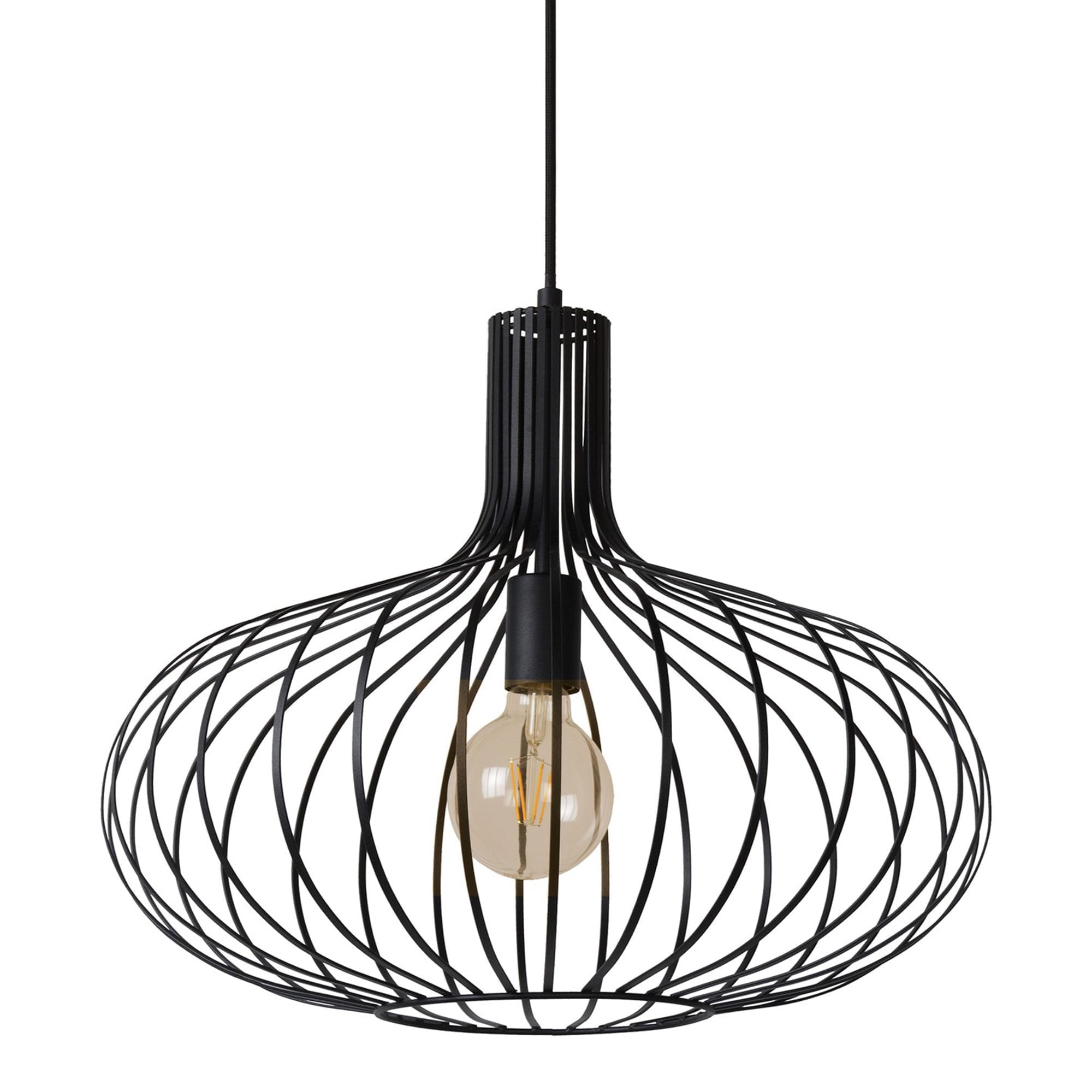 Style in suspension, this lighting design fits effortlessly within the mid-century kitchen. While the textured black iron is strong and bold, the delicate curves of the piece balance out its overall impact. This piece fits effortlessly when set amongst modern and vintage accessories.