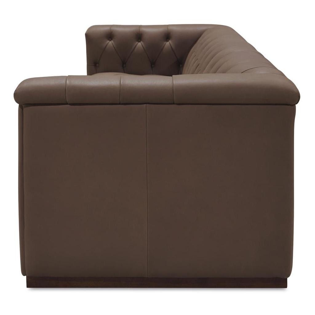 - Tufted Details: Tufted with a clean-lined, rectilinear frame with wood base detial.