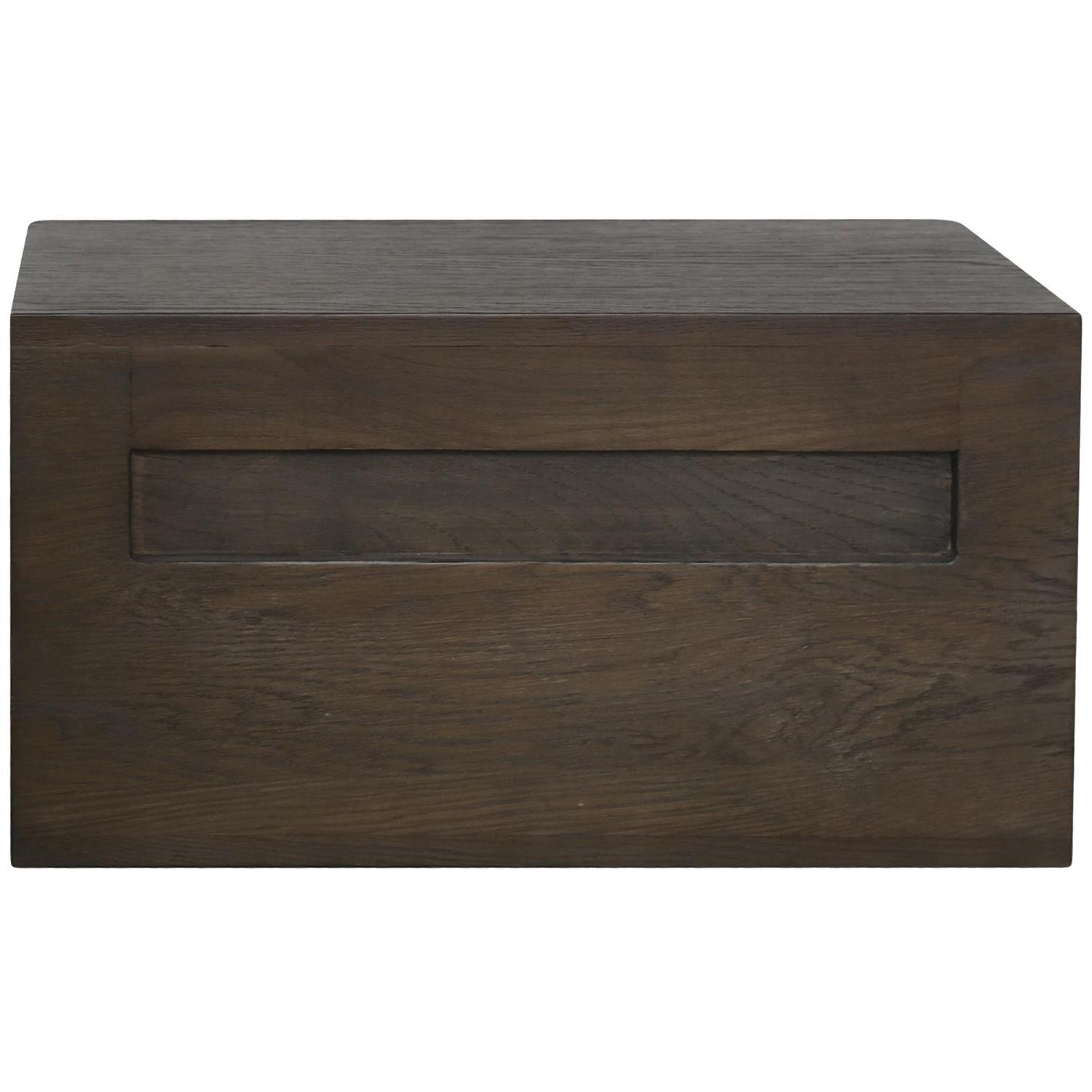 The versatile Jonah nightstand embodies midcentury style with its dark walnut finish and substantial form. Wall-mounted with a French cleat that creates a sleek, floating effect and featuring a drawer and an open shelf, ample storage allows this piece to serve as a nightstand or an entryway table.