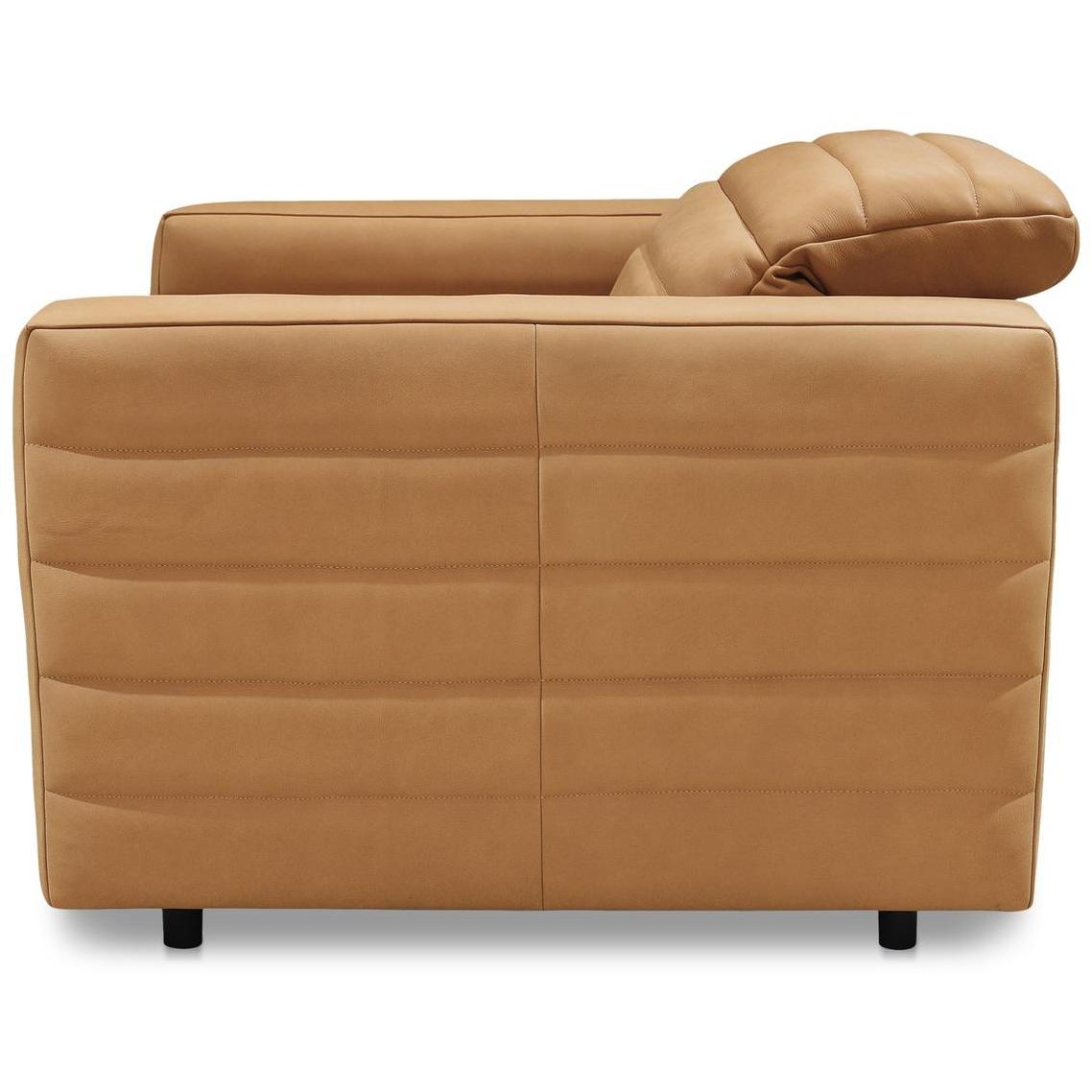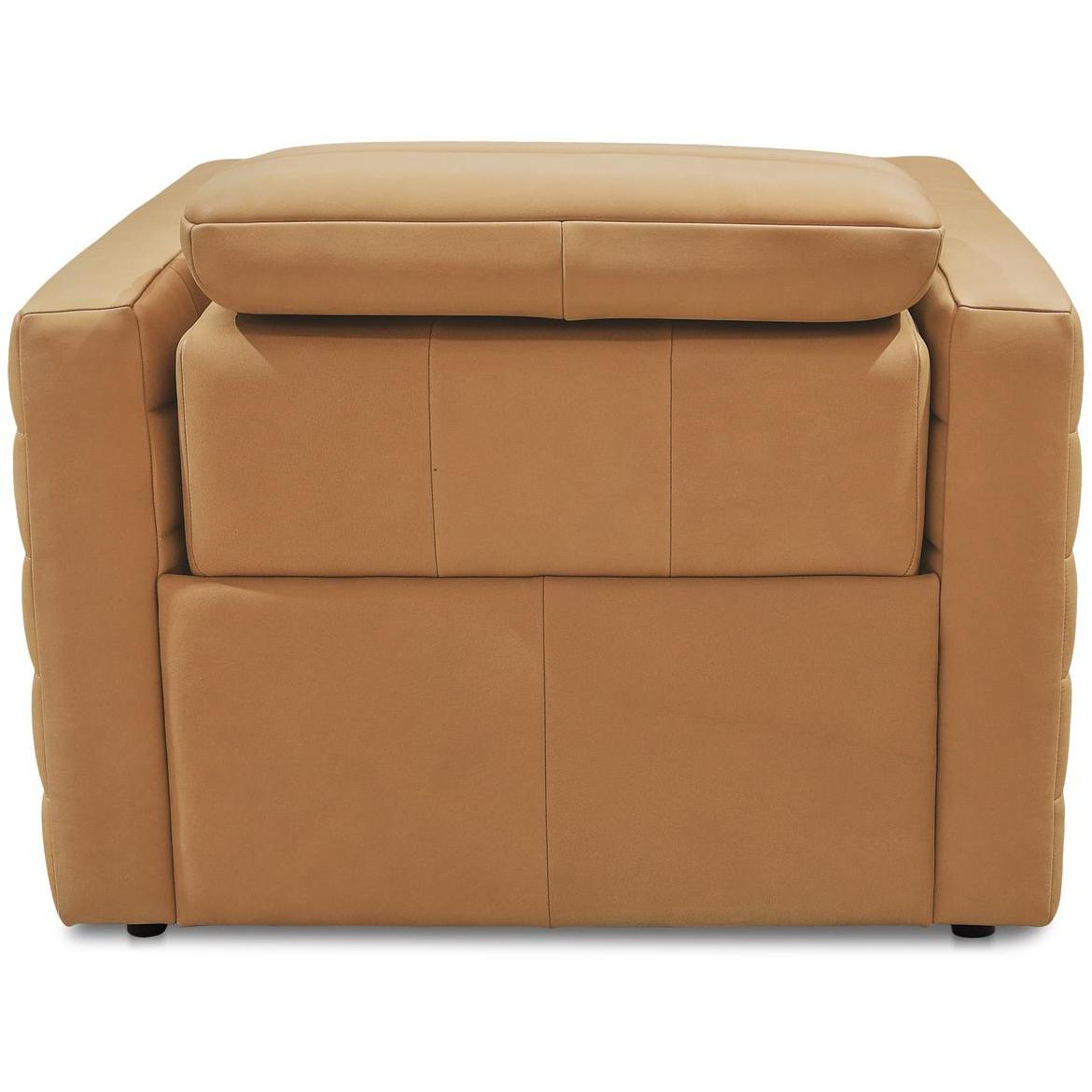 Wrapped in top-grain leather, the Juno power recliner chair’s sleek silhouette and horizontal channel detailing exude modern elegance. Hidden buttons effortlessly transition between positions, while the adjustable headrest offers personalized support.