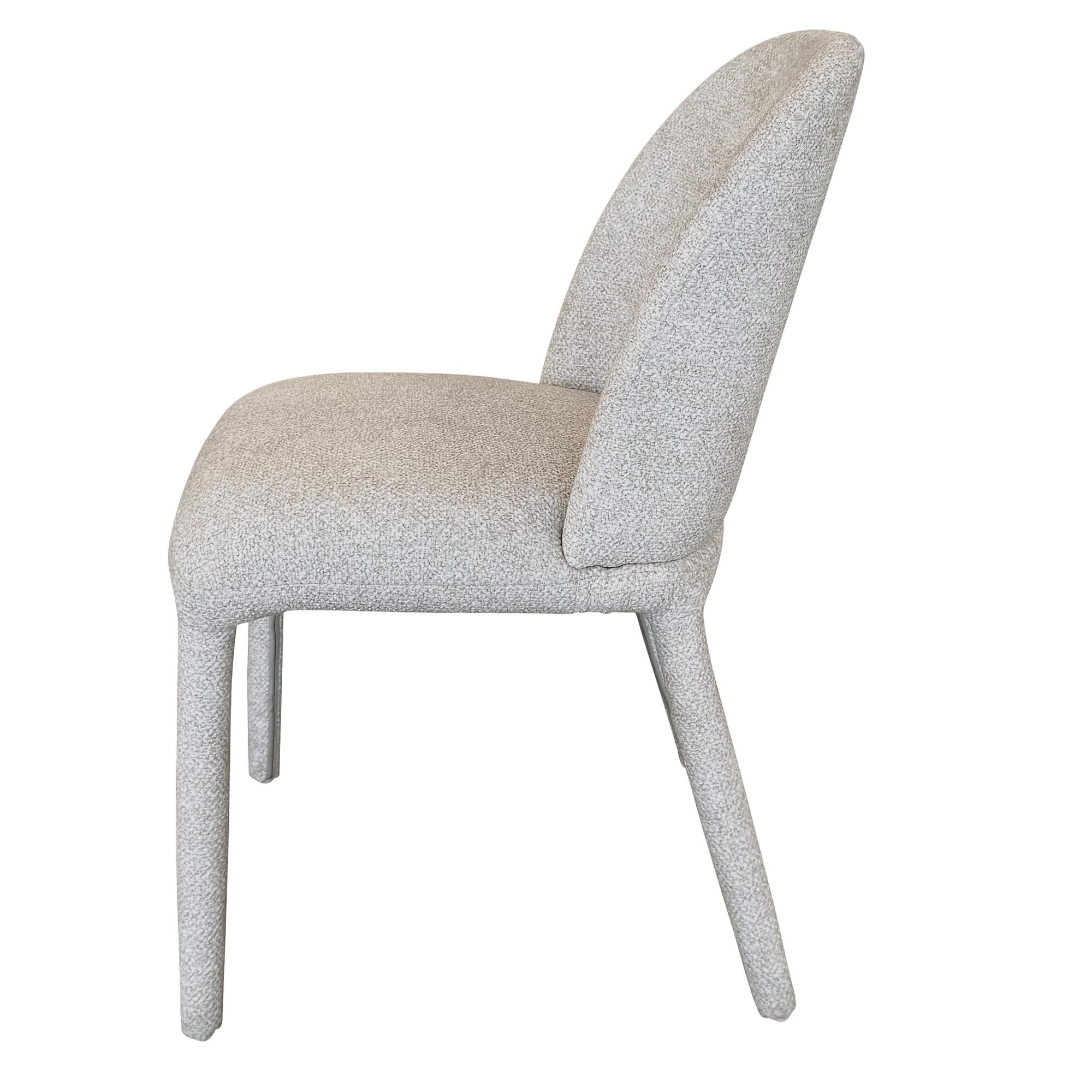 The contoured back on this beauty of a dining chair will provide hours of seated support while the clean lines will work well in any contemporary or transitional space. Soft, textured fabric upholstery covers not only the full seat and back, but also the metal legs, creating a monotone look that will make a big style statement. An easy match to various styles and finish of dining tables, or great to use as an accent chair in any room.