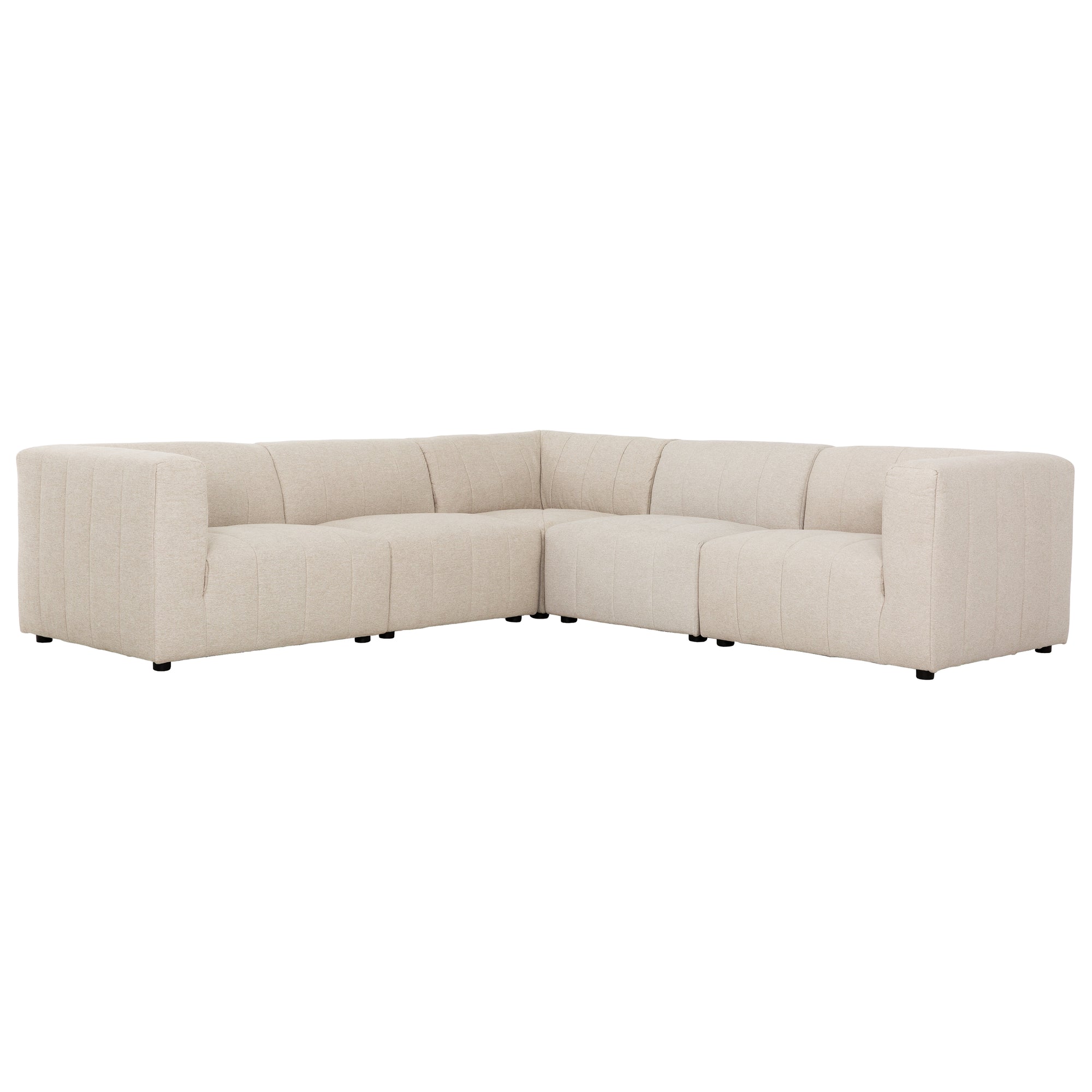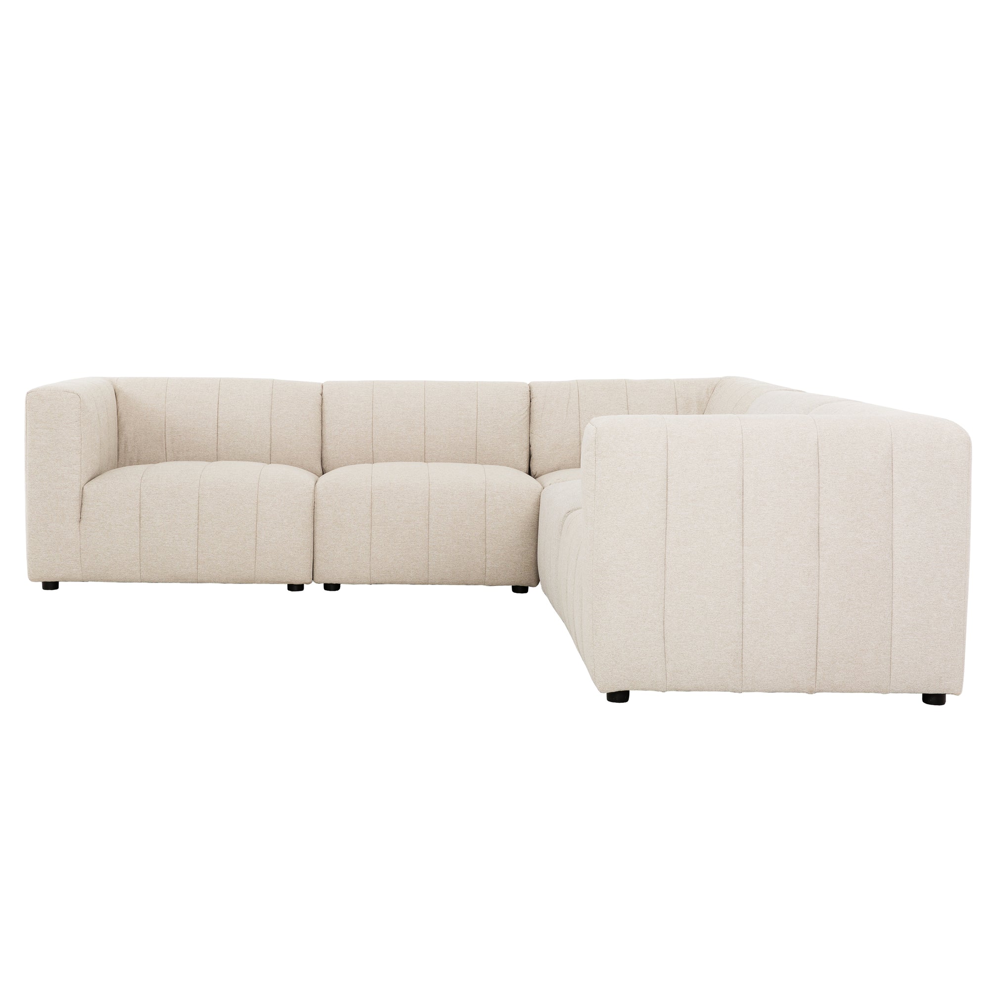 Redefine how you lounge with the Lauriston 5-Piece Modular Sofa — a flexible seating system designed to evolve with your space. Its modular form lets you arrange, expand, or refresh your layout whenever inspiration strikes. Crafted with a durable wood frame for everyday strength, it’s built to support deep, spring-cushioned comfort that lasts. Channel-stitched upholstery adds dimension and texture, while the smooth, refined fabric brings warmth and modern elegance to any room.