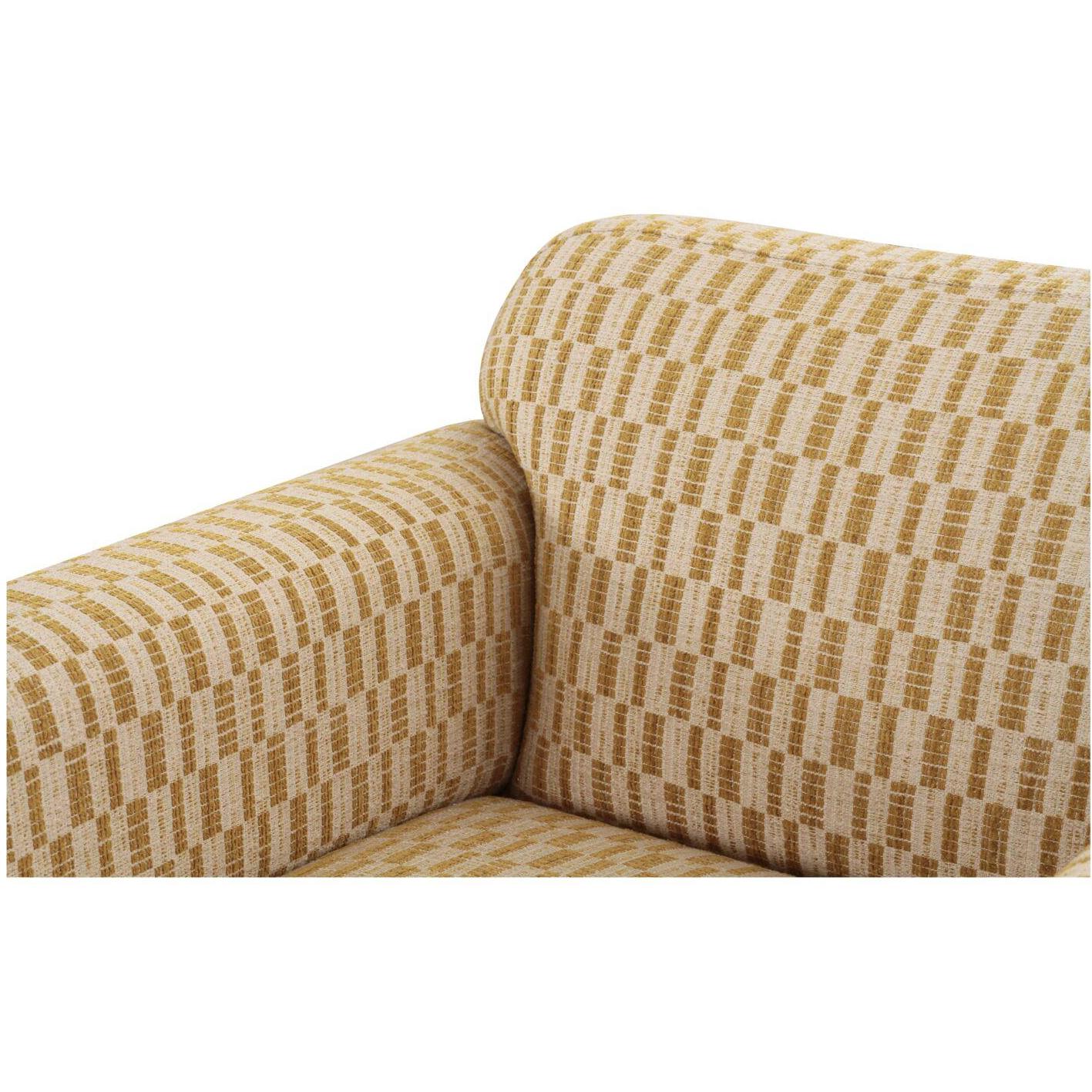 - Geometric pattern with tonal contrast piping & inward rolled arm detail