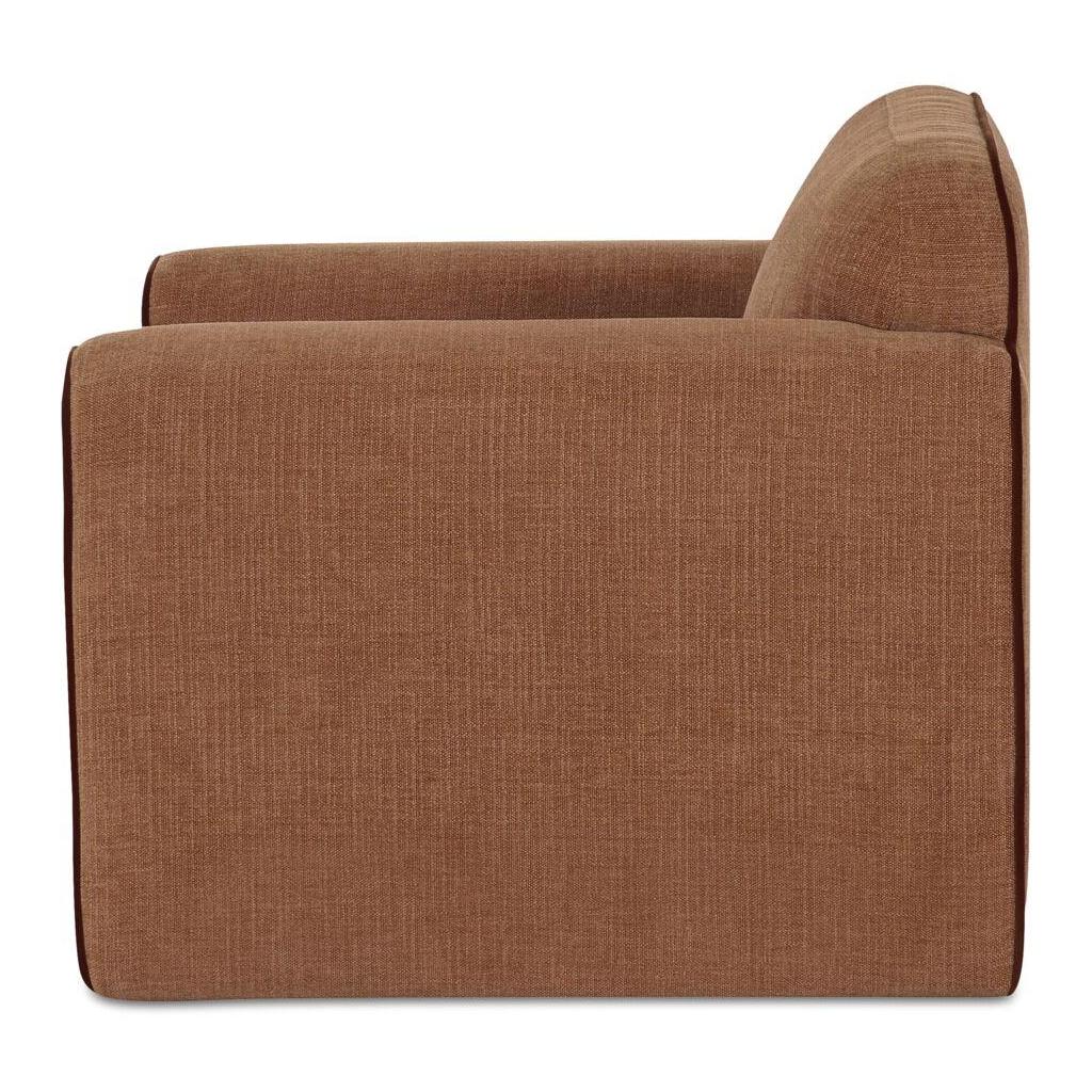 Striking from every angle, Leo reinvents the classic roll arm with a bold, modern edge—turning tradition inside out and creating the perfect place to kick back, relax, and hit ‘next episode’. Its squared side profile contrasts with inward-rolled arms and a sculptural curved back, creating a striking balance of form and function. With tonal contrast piping and fully upholstered legs, Leo blends sophistication with personality—proof design is all about the details.