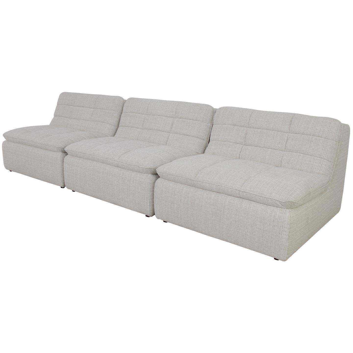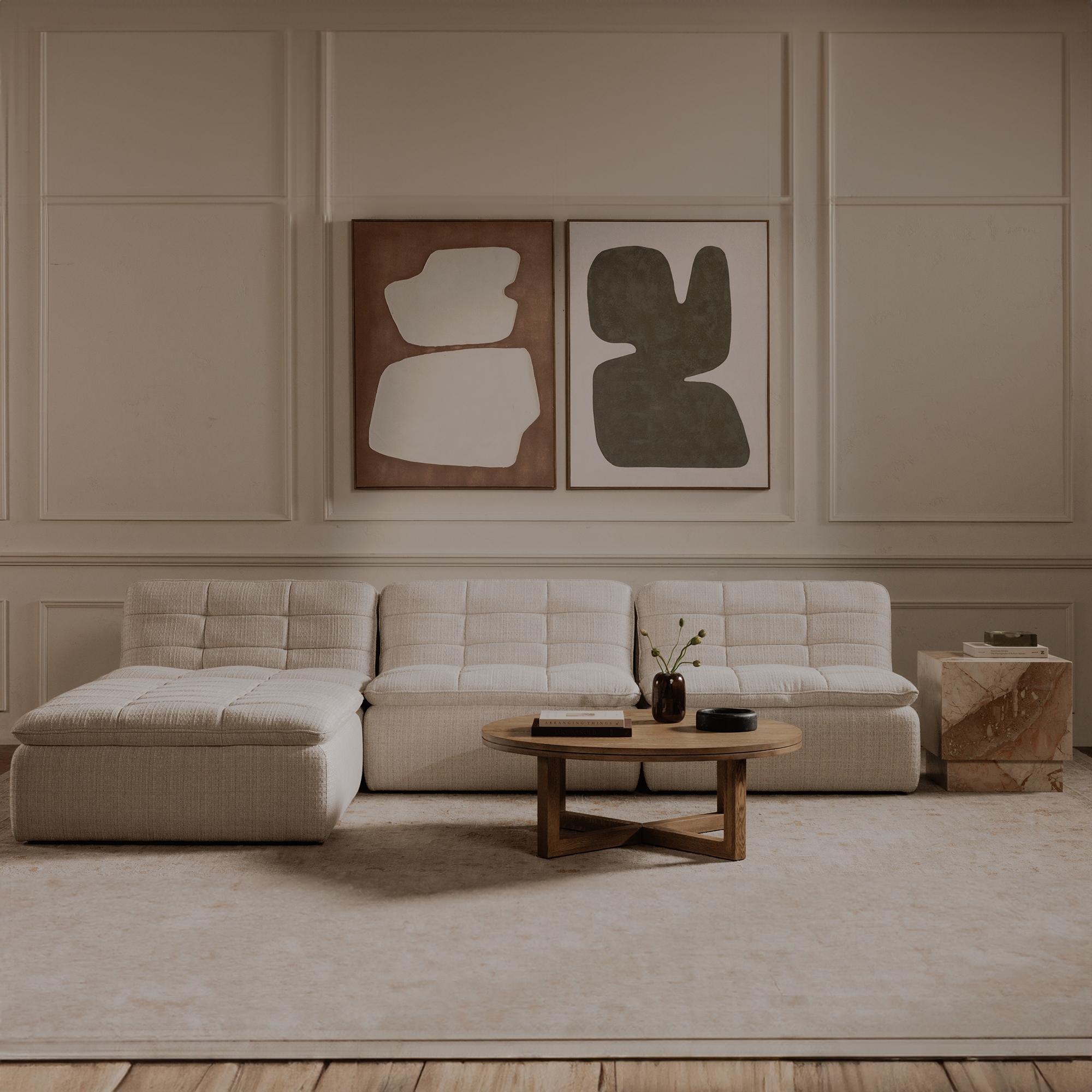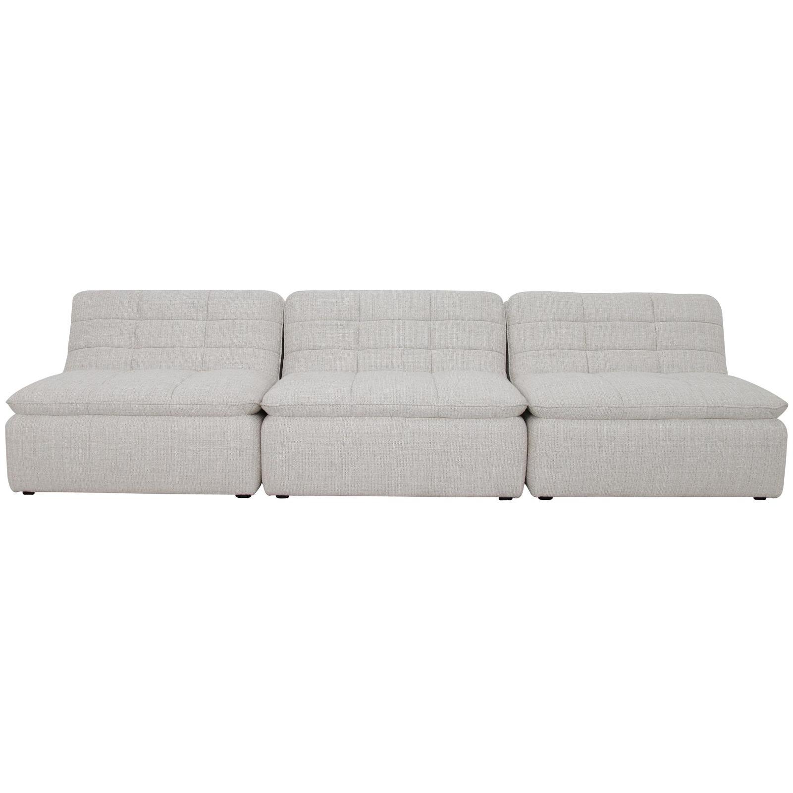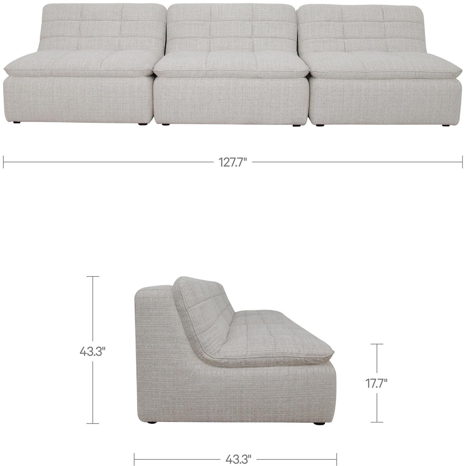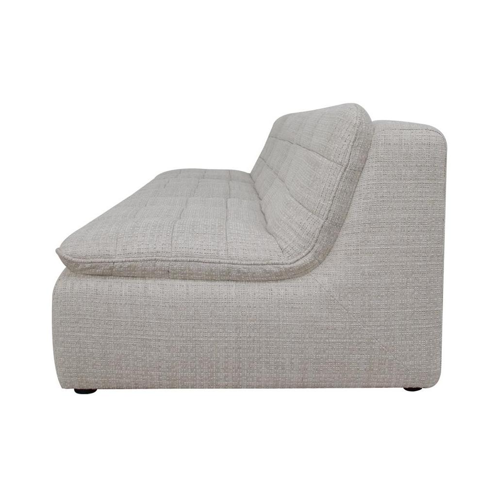 The Lino armless modular sofa sectional adds vintage charm reimagined for modern sophistication. Inspired by 1970s modernist design, its distinctive grid-like channeling creates a captivating visual rhythm. Upholstered in a textured blend of viscose, linen, and cotton, this armless modular sofa offers indulgent comfort with its plush, generously stuffed seat.