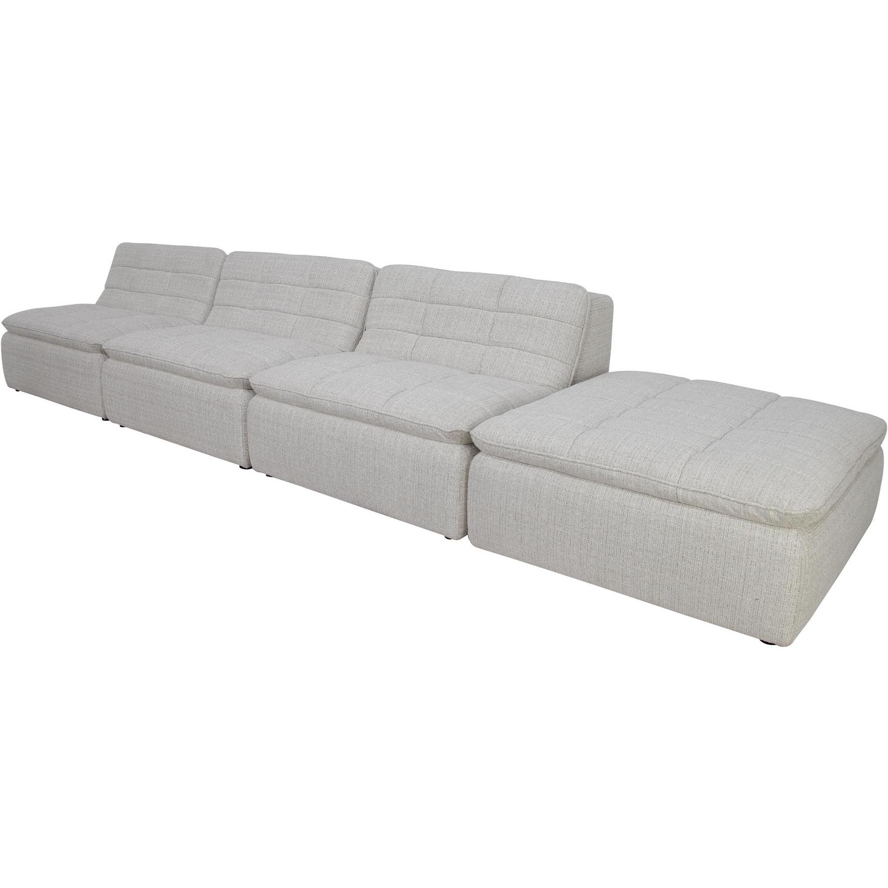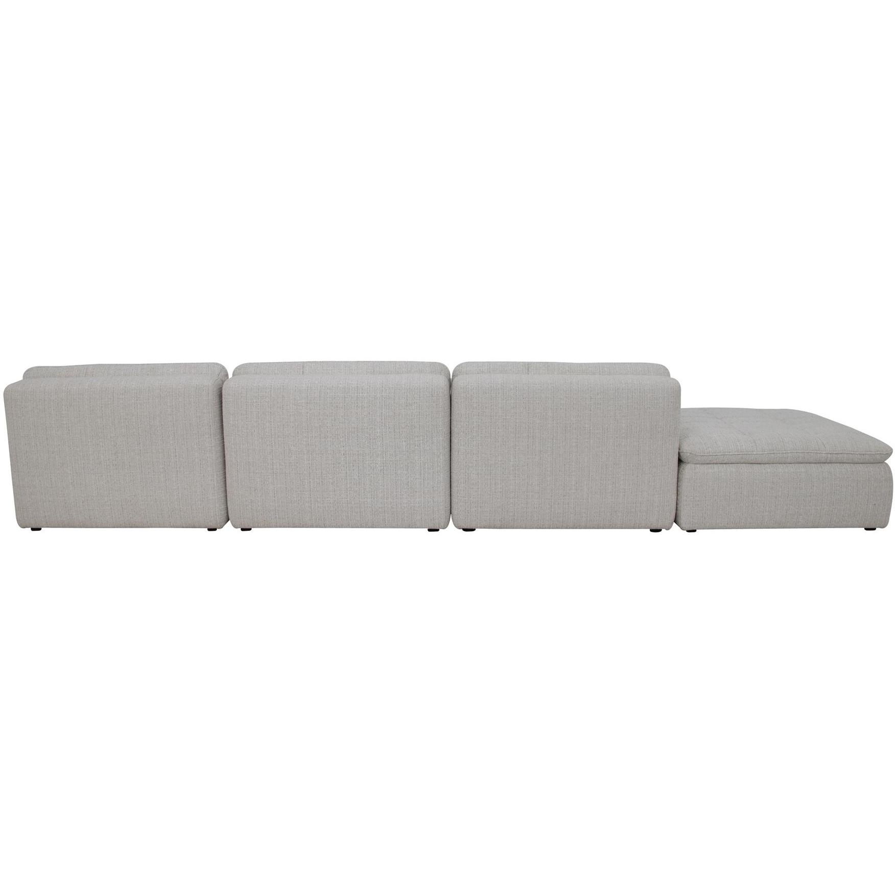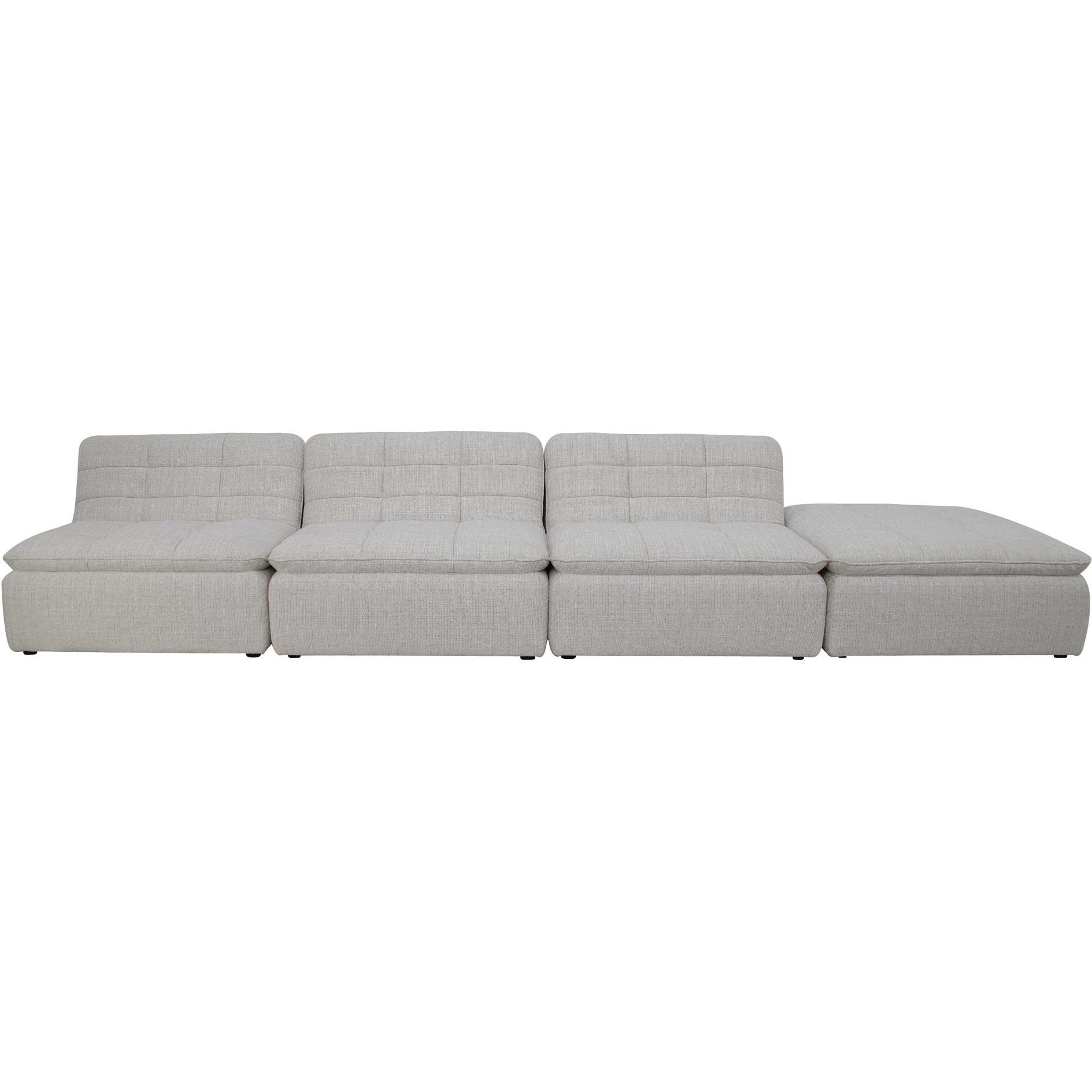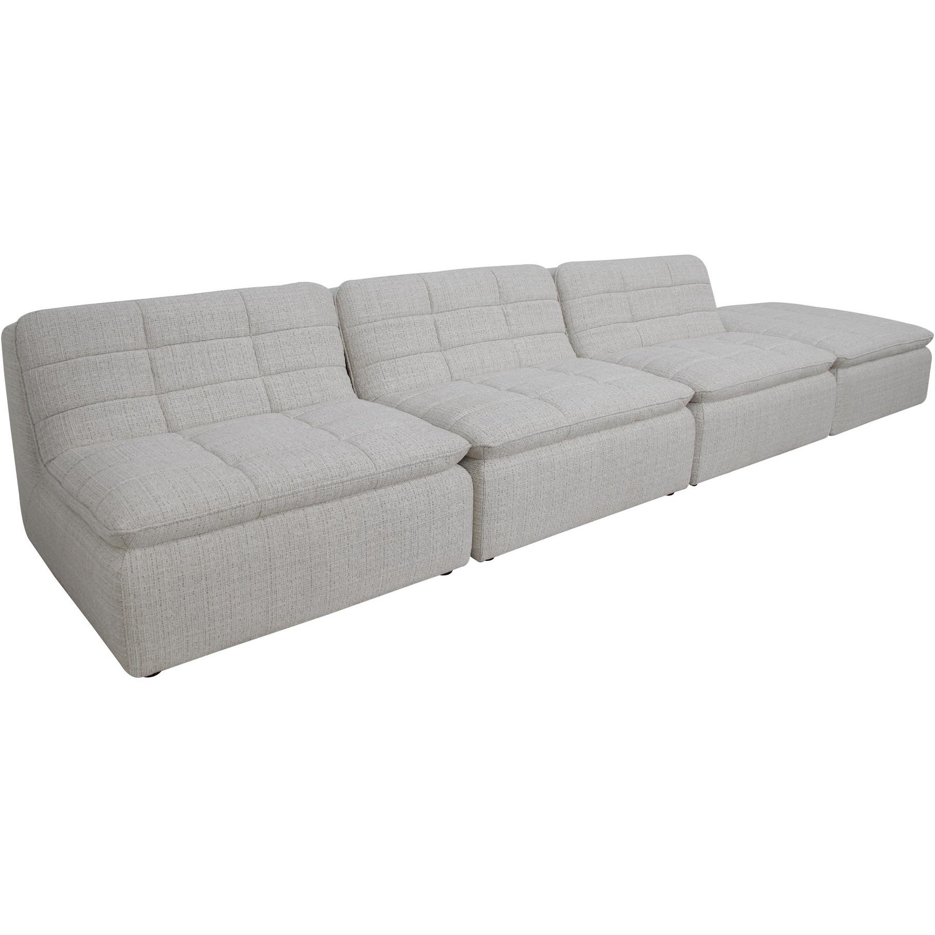 The Lino lounge modular sectional adds vintage charm reimagined for modern sophistication. Inspired by 1970s modernist design, its distinctive grid-like channeling creates a captivating visual rhythm. Upholstered in a textured blend of viscose, linen, and cotton, this lounge modular sectional offers indulgent comfort with its plush, generously stuffed seat.