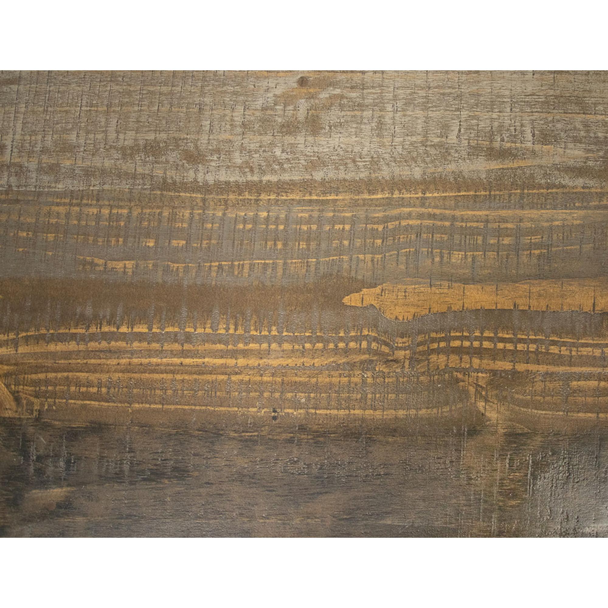 - Multi-step hand-painted water-based acrylic lacquer finish in gray and brown tones for an updated “reclaimed wood†look.