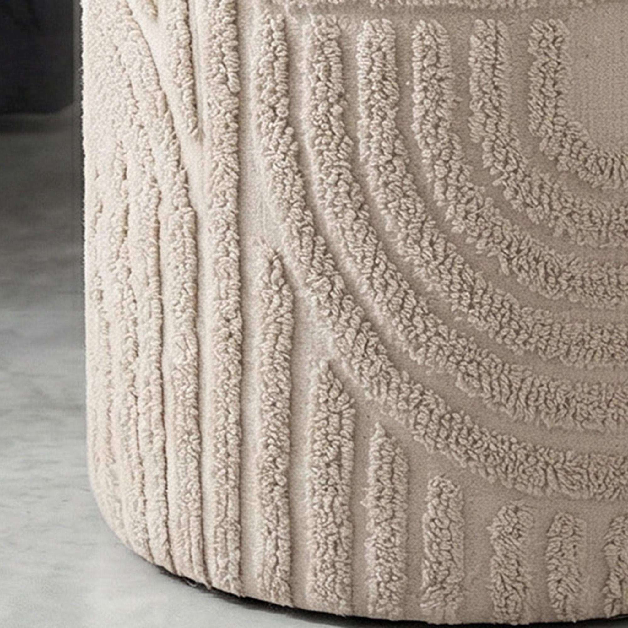 - Sculpted geometric 100% cotton upholstery adds visual depth