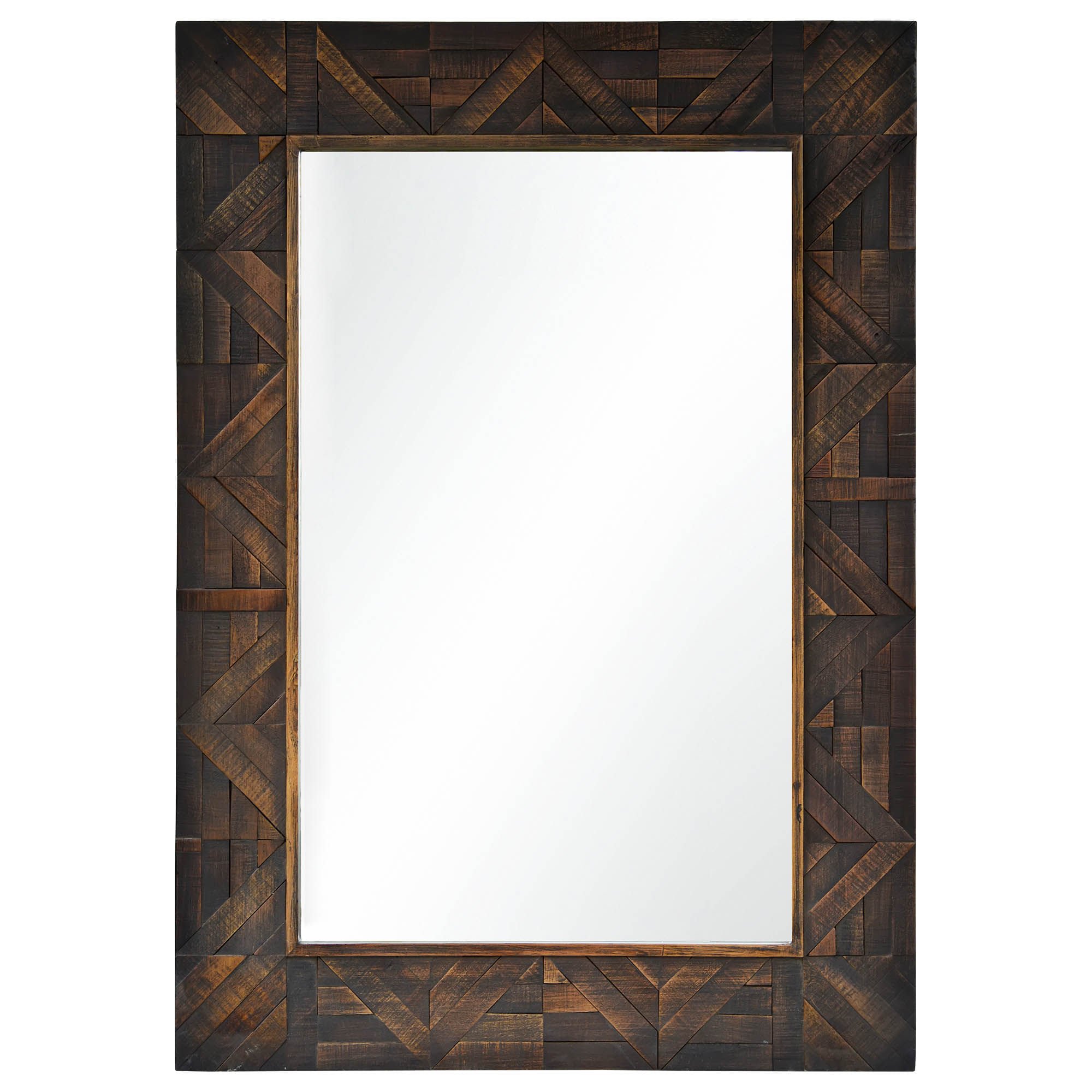 Cozy, rich and warm this wood framed mirror helps complete an inviting entryway design. Rustic yet traditional, it would be ideally suited for a space featuring bold, jewel tones.