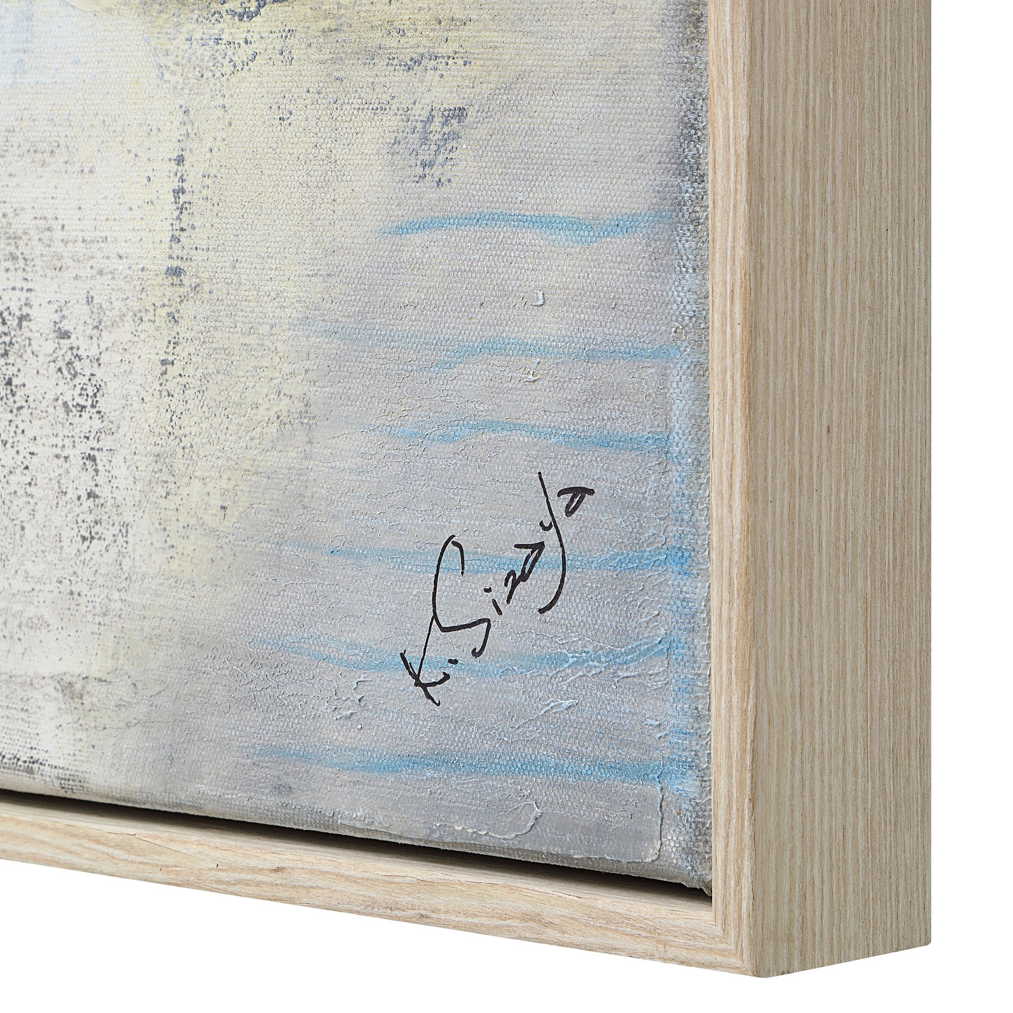 Set a serene, contemplative mood with the Marbleau landscape canvas art. Hand-painted with layered gel and paper accents, its texture and matte finish invites quiet reflection. Framed in soft cream, this timeless piece balances light and depth, adding effortless elegance and calming style to any room.