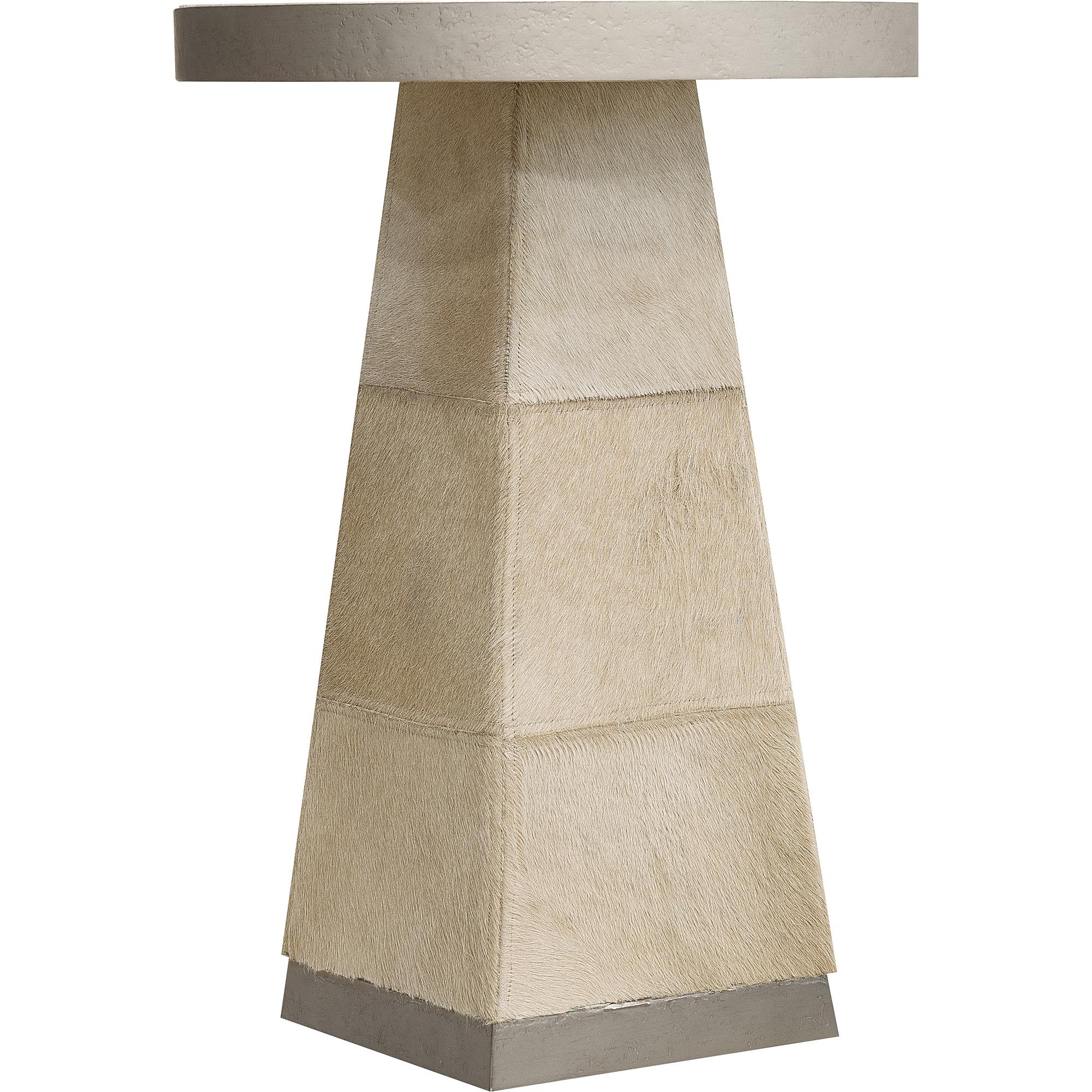 - Finish: Honed travertine top featuring beige and brown coloring. Silver metal frame with beige hair on hide leather