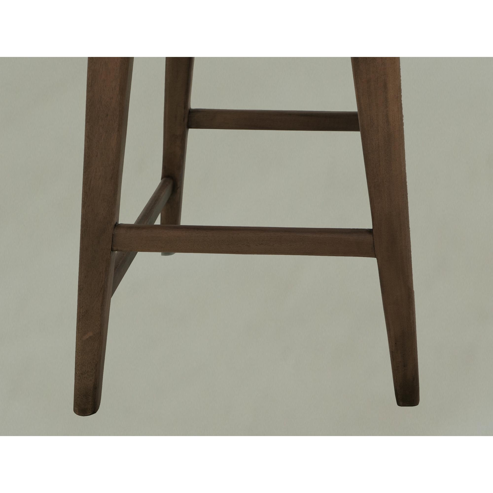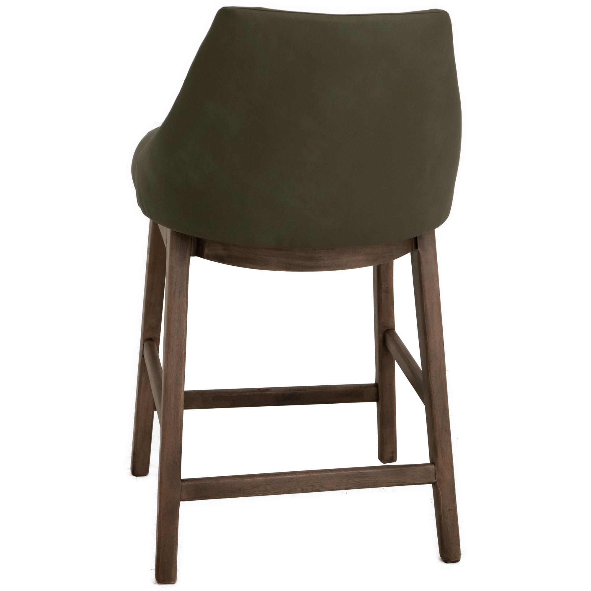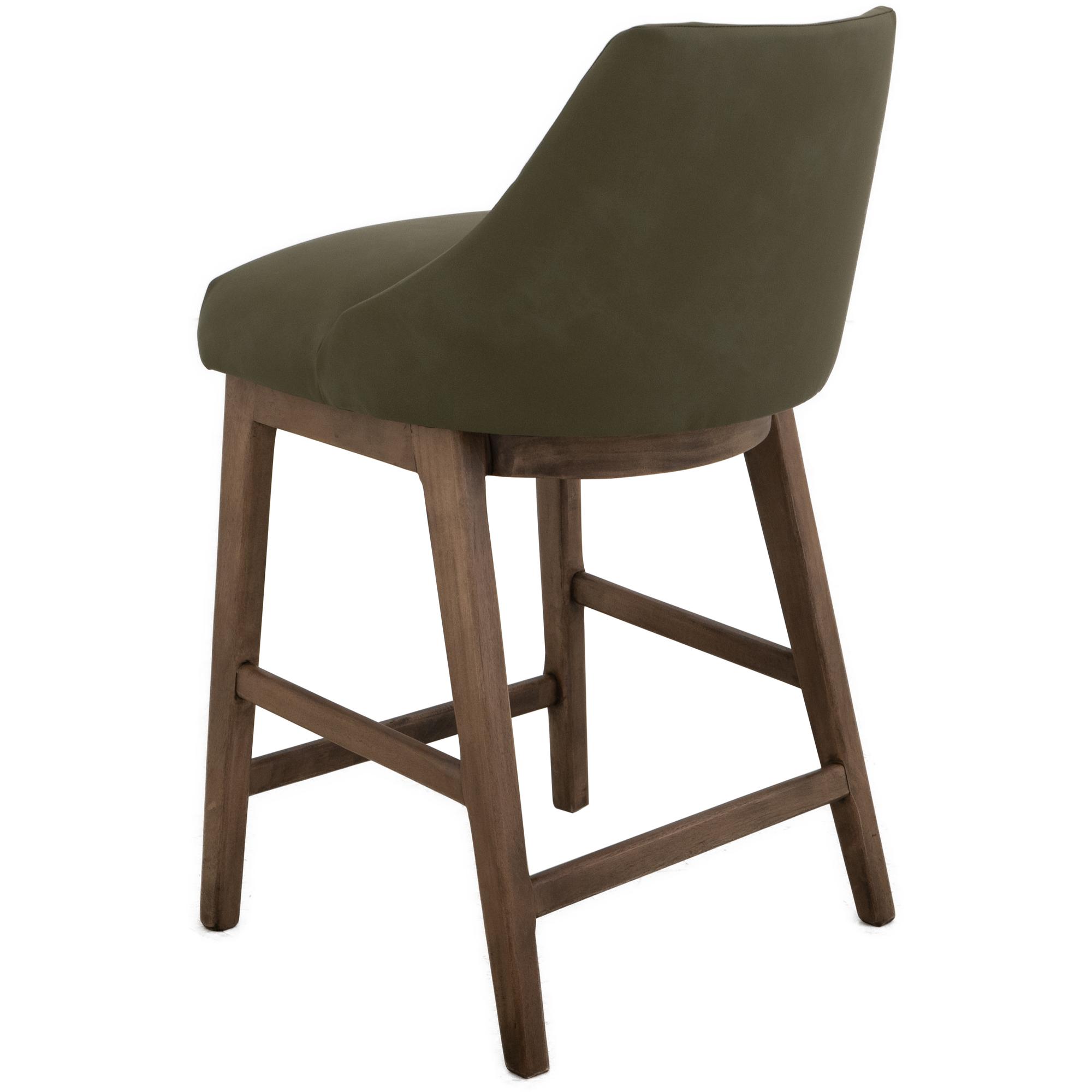 The Mezquite stool collection features a sleek, modern design that combines style and practicality. It has a sturdy wooden frame with a natural finish, giving it a warm and timeless appeal. The seat and backrest are upholstered in a green leather-like material, adding softness and comfort. The design includes clean lines, four tapered legs, and crossbars for enhanced stability, making it perfect for relaxed, modern-inspired interiors. This stool is ideal for use at bars, kitchen counters, or as casual seating.