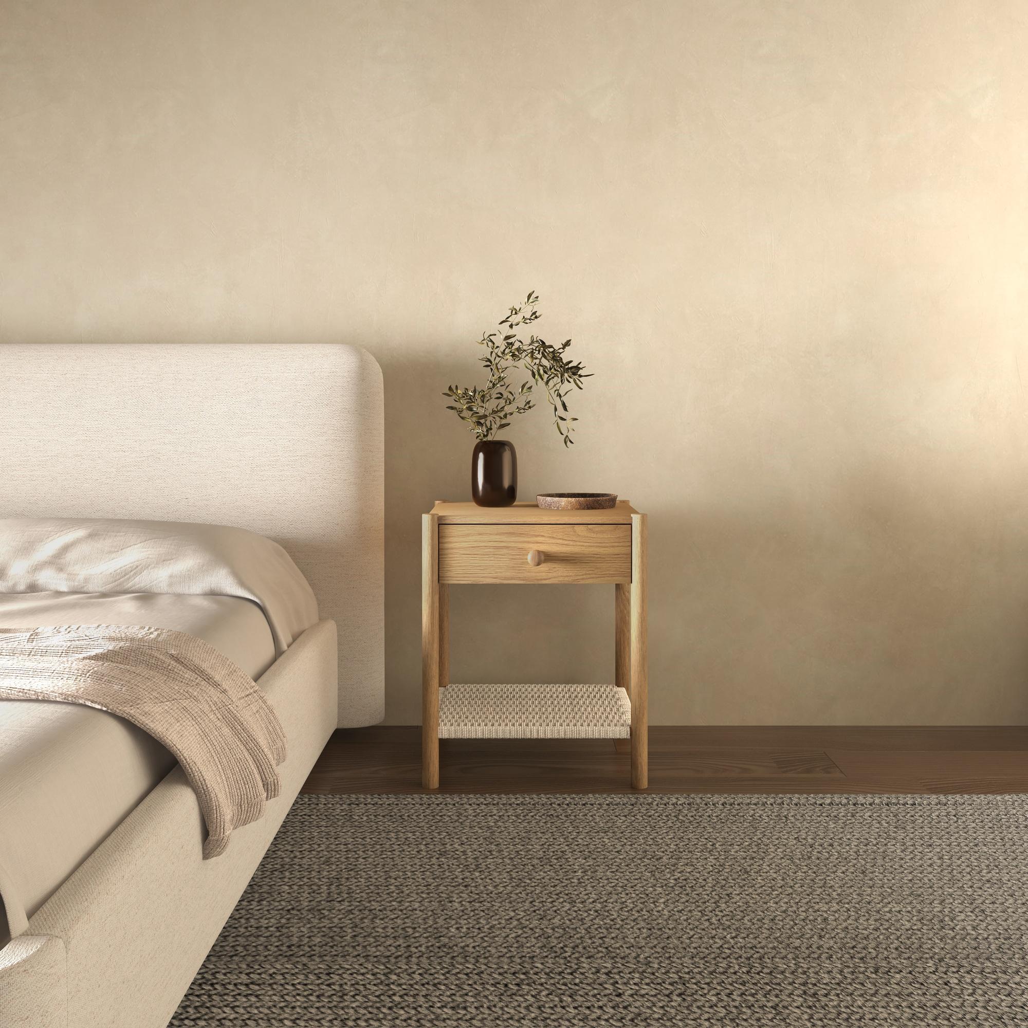 The Millie nightstand embodies understated elegance, harmoniously blending simplicity with sophistication. Artfully woven natural paper rope adorn its clean silhouette, introducing a captivating texture. A single drawer with soft-close glides and an open shelf below offer practical storage solutions. Supported by solid oak legs, this piece bridges quiet luxury with timeless appeal.