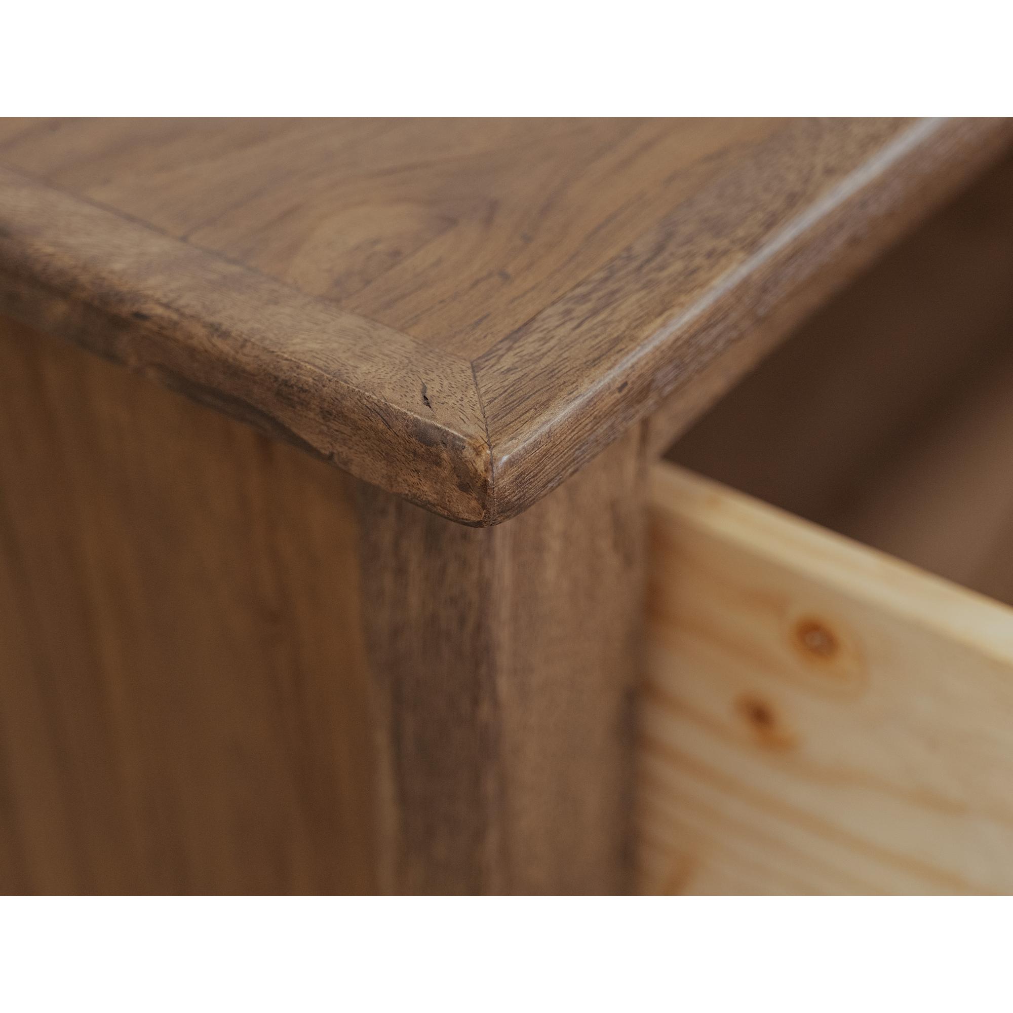 The Teka collection truly captures the essence of transitional design by seamlessly blending metal and wood elements. Meticulously crafted from sustainable mango wood and Teak veneer, with a translucent multi-step multi-brown finish.