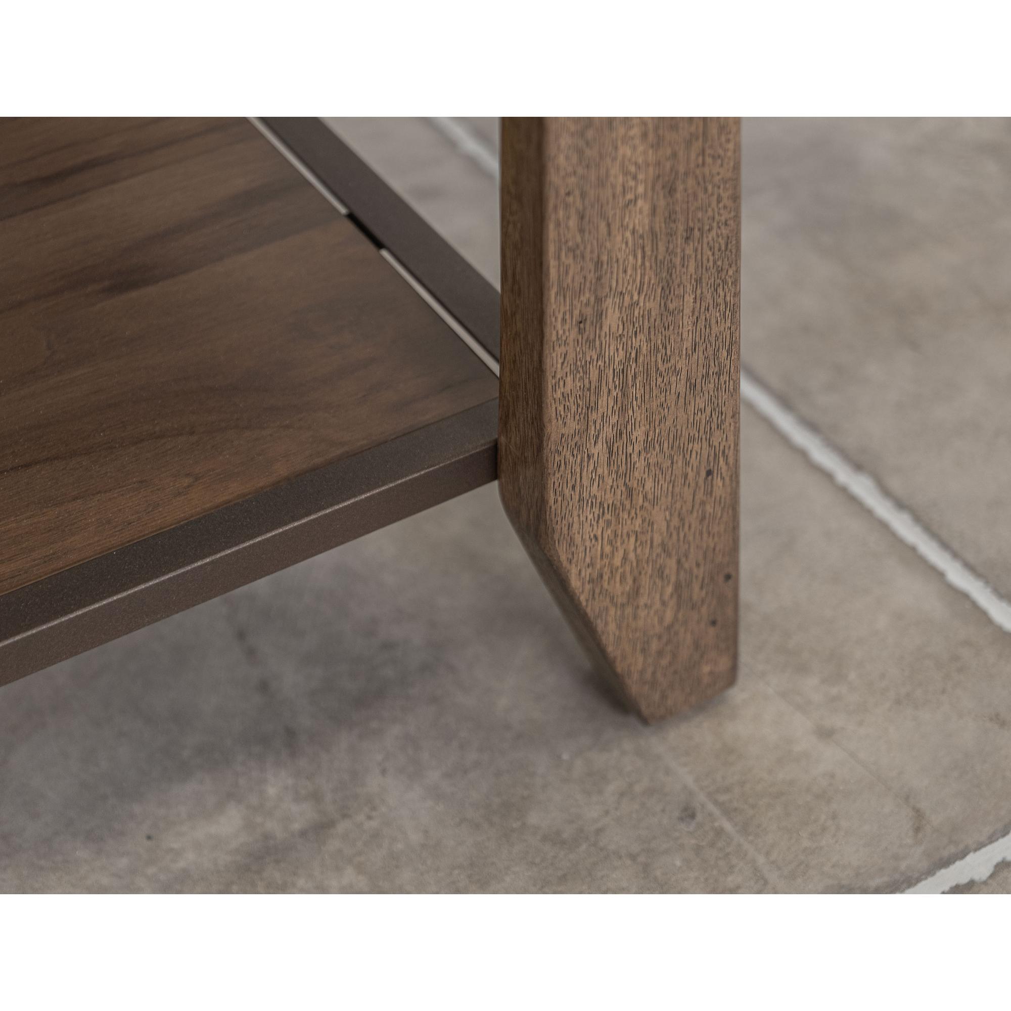 The Natural Teca collection captures the essence of transitional design by seamlessly blending metal and wood elements. The occasional tables are crafted from sustainable mango wood and teak veneer, showcasing the natural beauty of teak wood on the tops and providing a bottom shelf for extra storage.